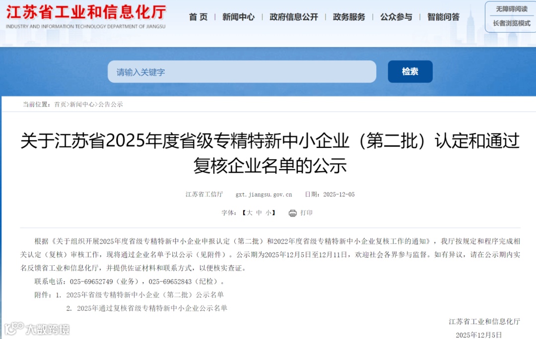 热烈祝贺南京喜悦科技股份有限公司(简称“喜悦科技”)荣获江苏省科技型企业“专精特新中小企业”称号。