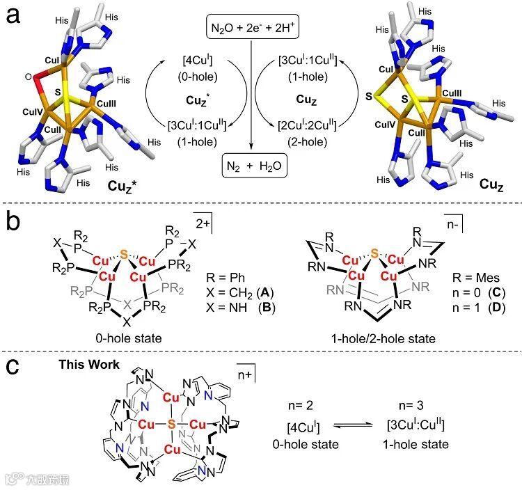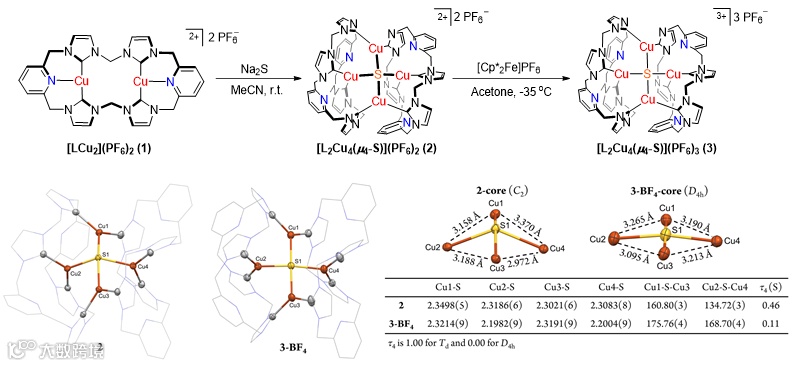 导读:德国哥廷根大学Franc Meyer教授课题组采用该大环配体成功合成出单硫原子桥联的四核铜配合物,即构建了新型配体骨架稳定的CuZ*分子模型,且该配合物能够以“0/1-空穴” 态被分离和表征。