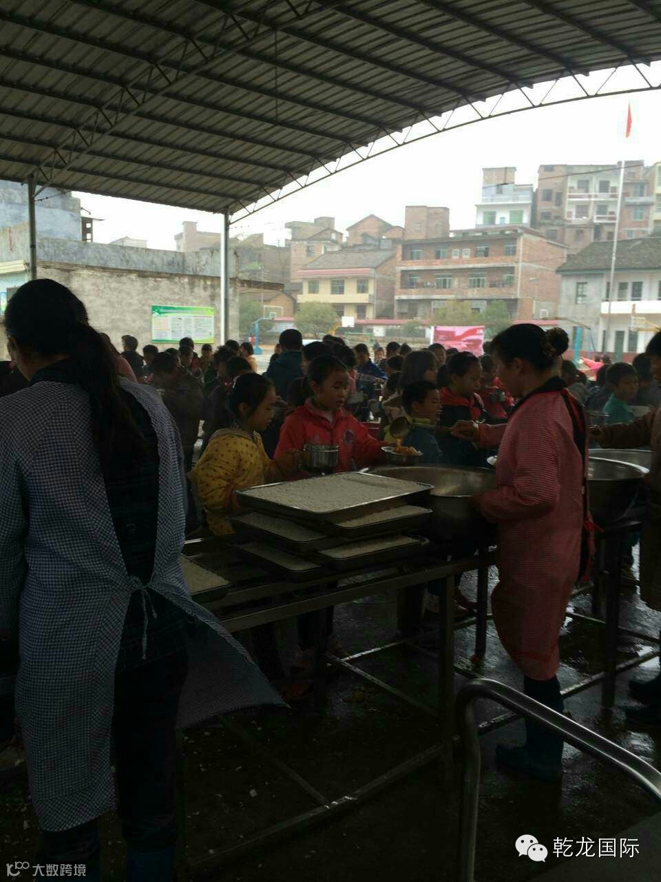 几乎是露天的食堂,即便如此孩子们也吃的很香。