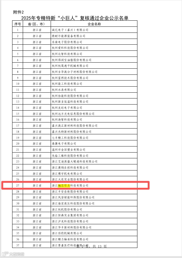 通过2025年专精特新“小巨人”复核企业名单的公示,荣获国家级专精特新“小巨人”企业称号。