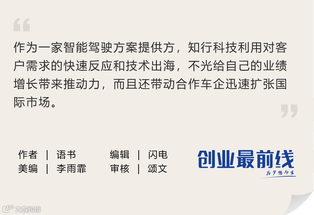 作为一家智能驾驶方案提供方,知行科技利用对客户需求的快速反应和技术出海,不光给自己的业绩增长带来推动力,而且还带动合作车企迅速扩张国际市场。这种联动作用,让这家企业在极度内卷的中国汽车智能驾驶市场找到自己的发展空间。