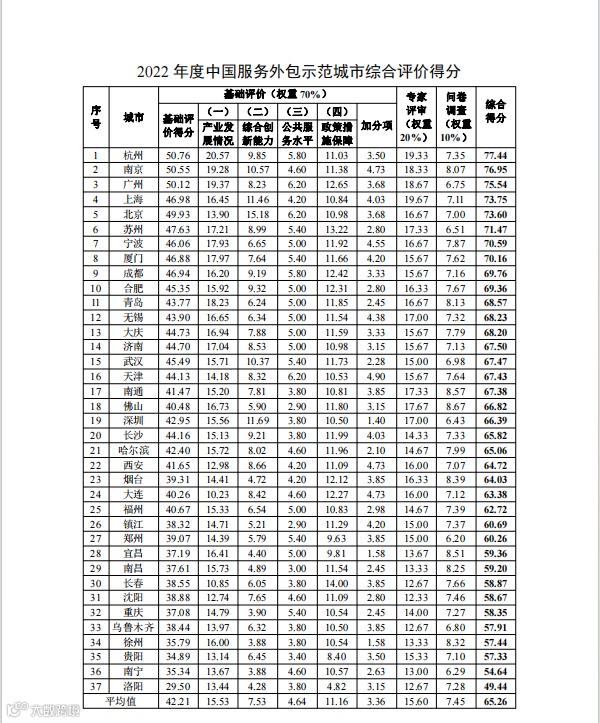 根据商务部等9部门《关于印发<中国服务外包示范城市综合评价办法>的通知》(商服贸函〔2021〕12号),我部会同相关部门对37个中国服务外包示范城市和13个申请城市2022年度服务外包发展情况开展了综合评价。