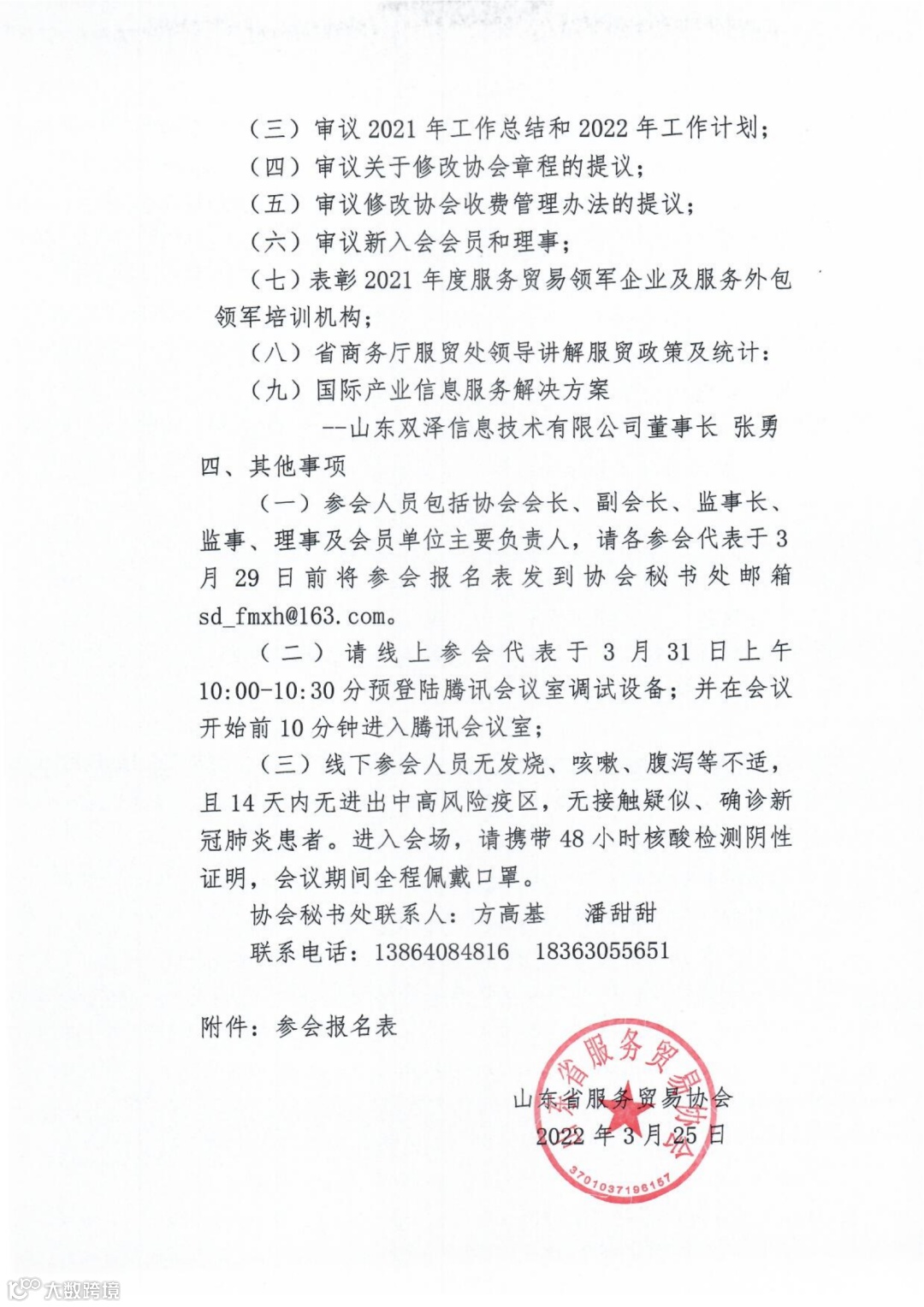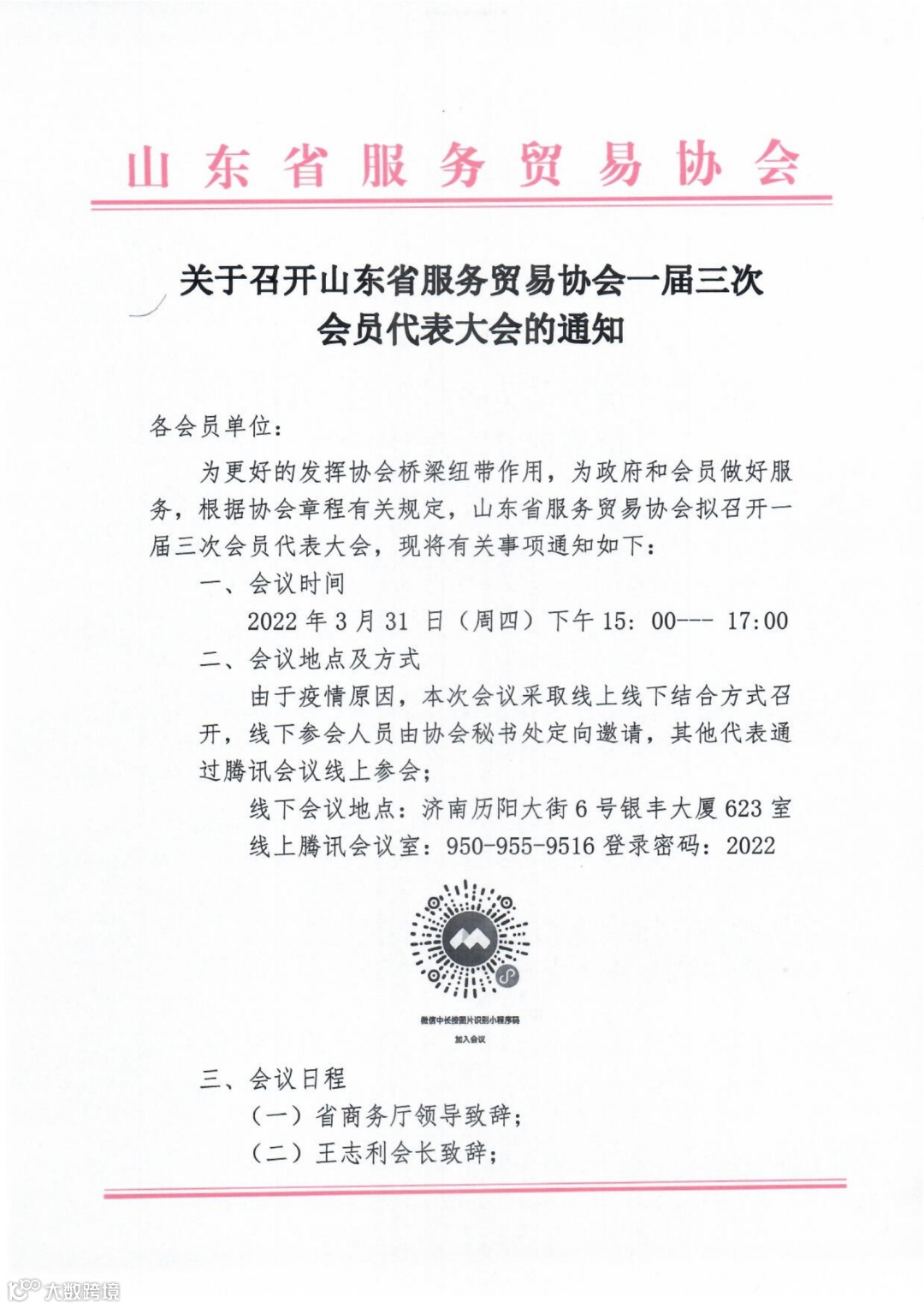 导读:关于召开山东省服务贸易协会一届三次会员代表大会的通知