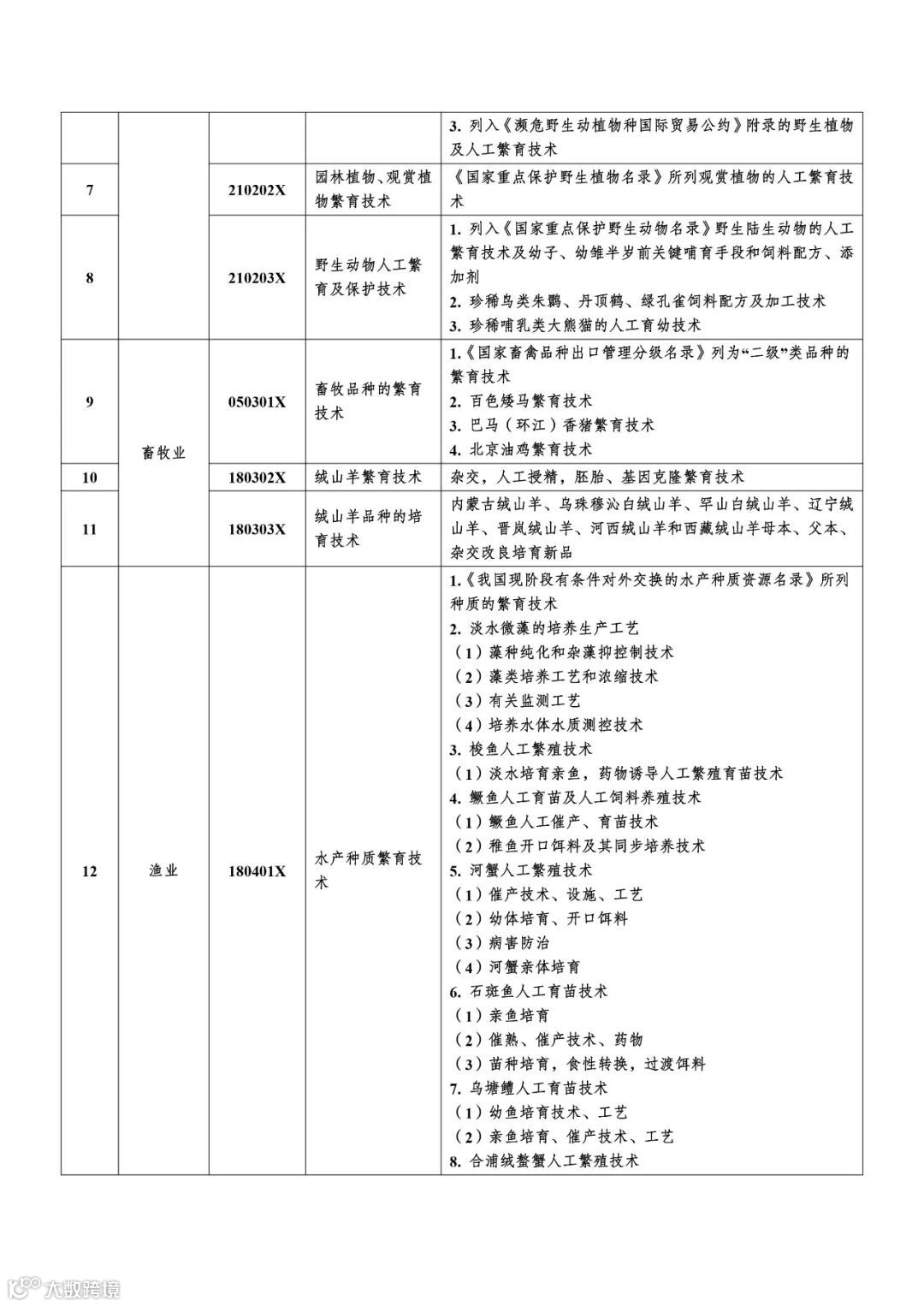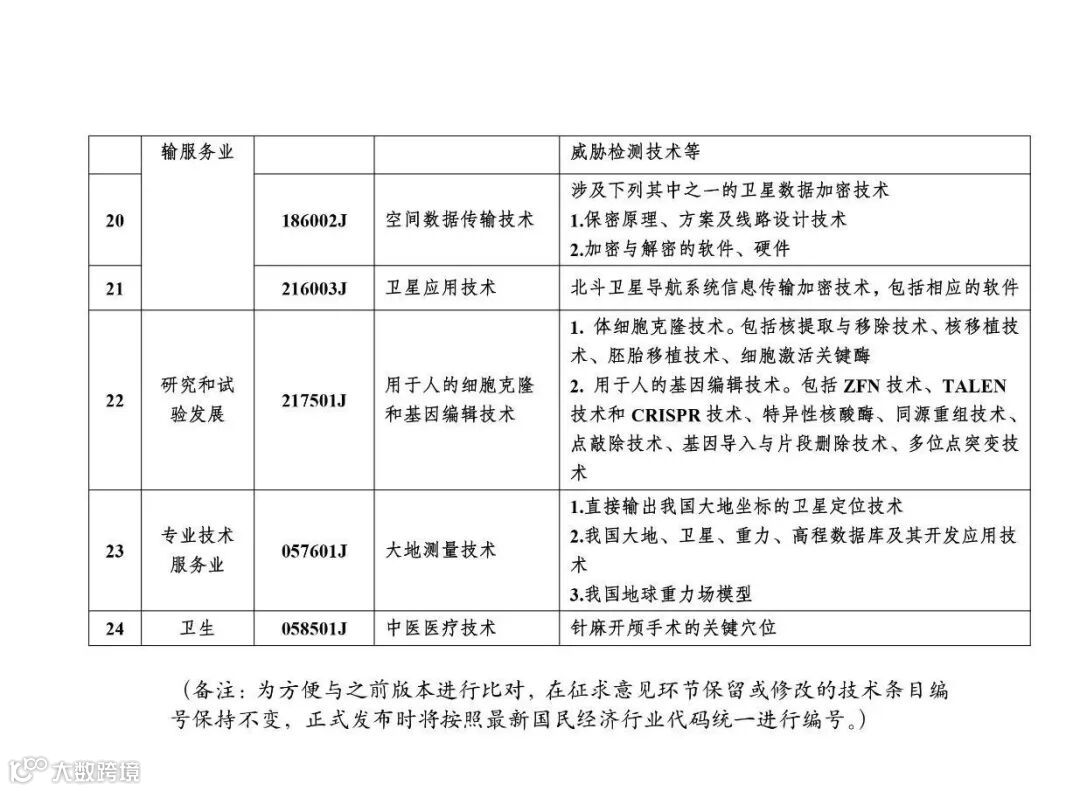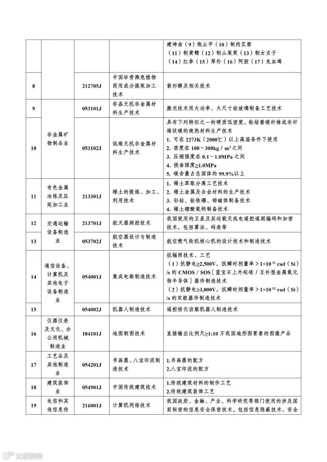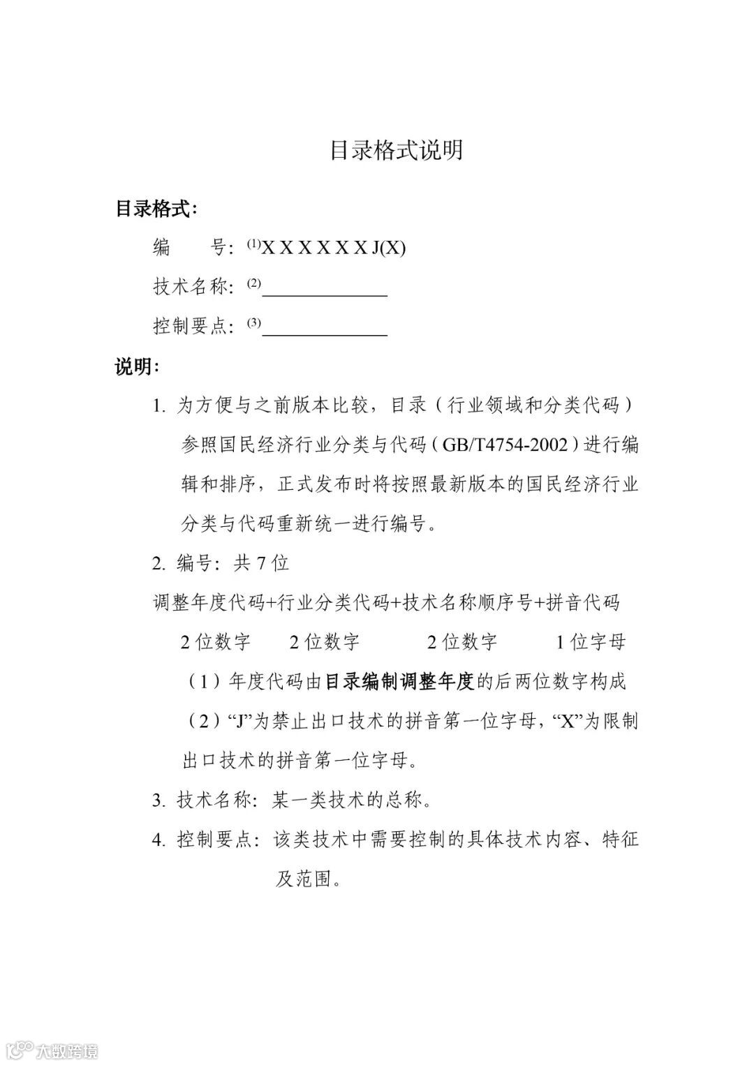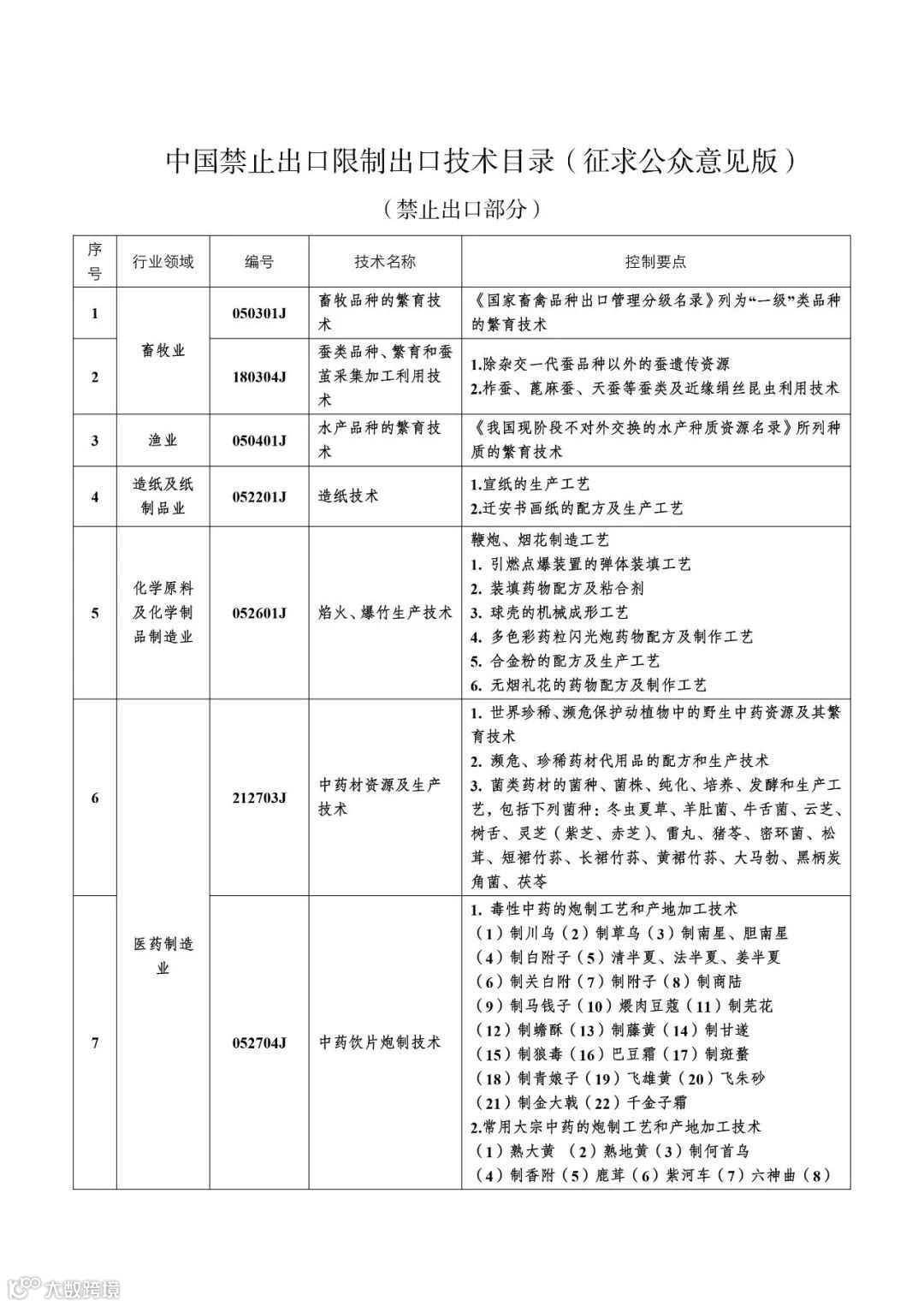 附件:中国禁止出口限制出口技术目录(征求公众意见版)