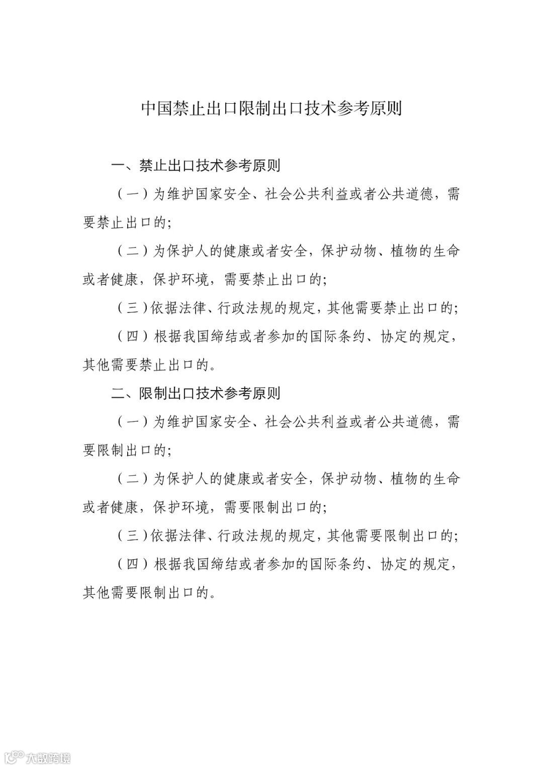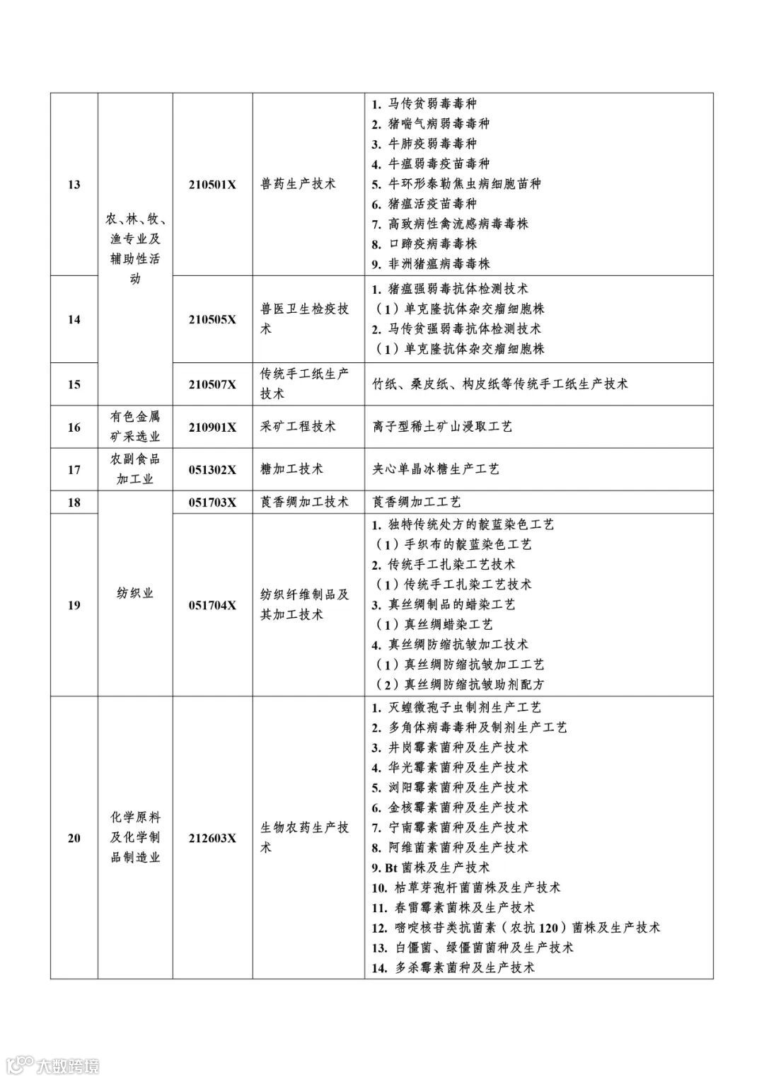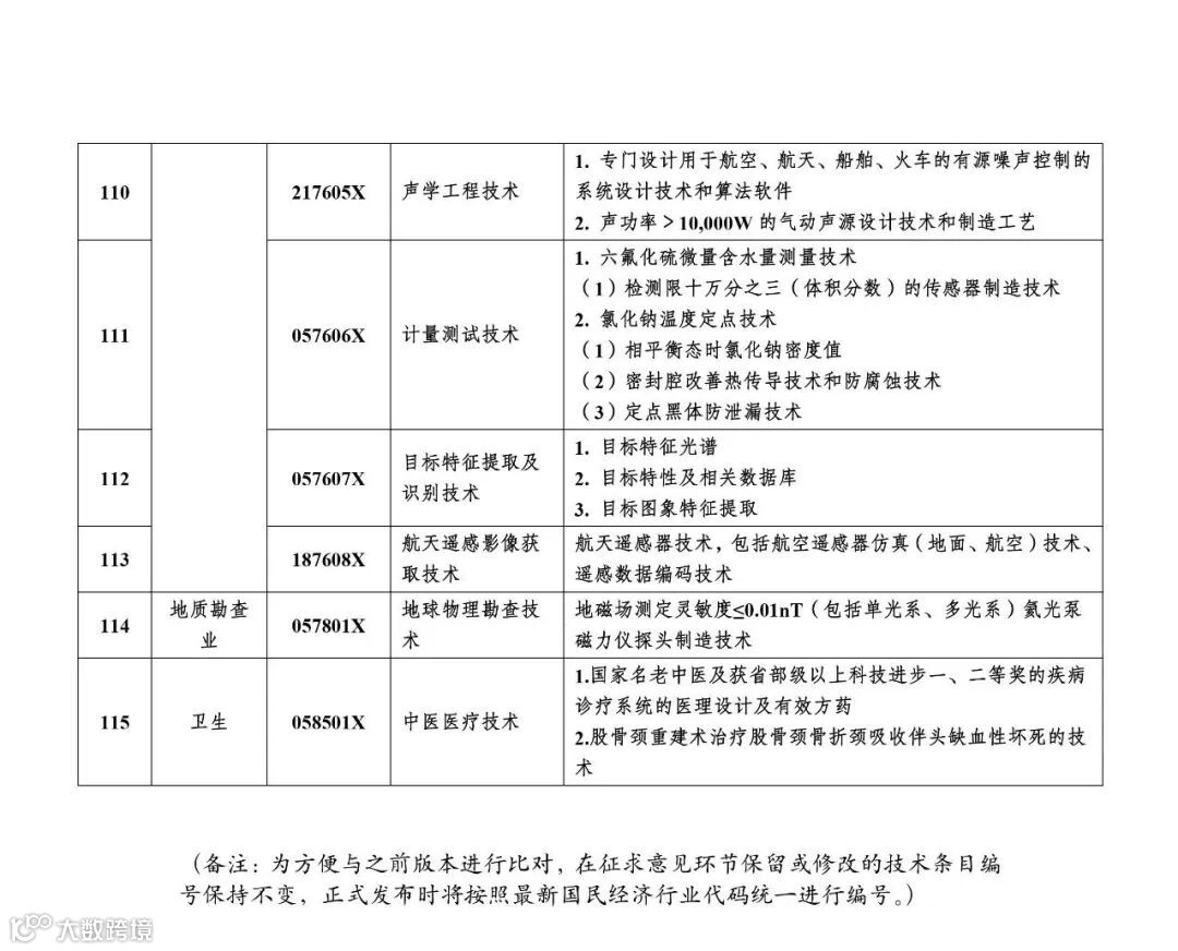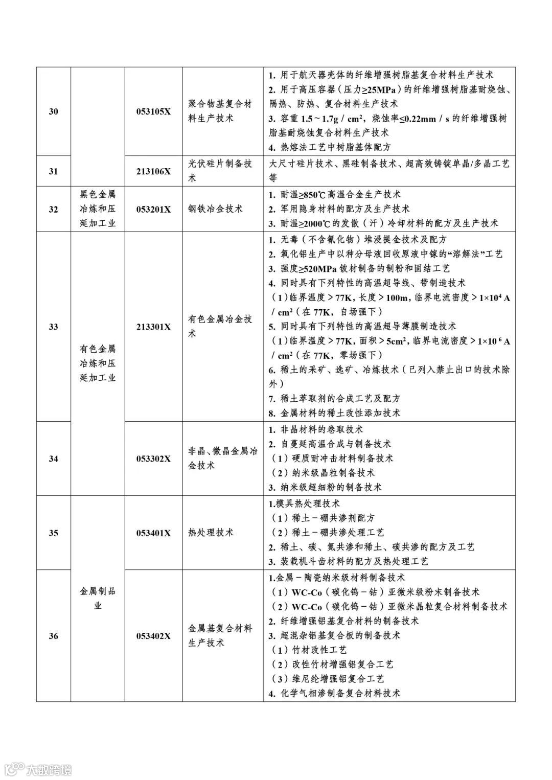 附件:中国禁止出口限制出口技术目录(征求公众意见版)