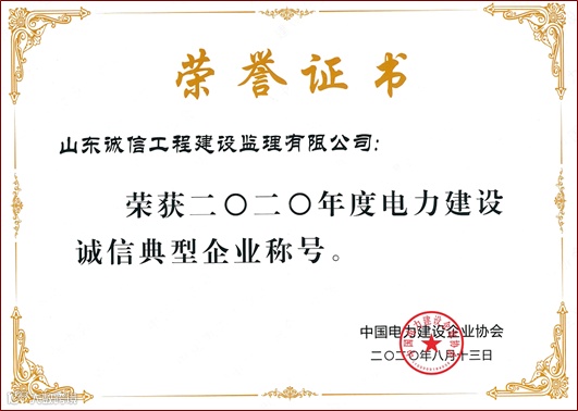 公司自成立至今,模范执行国家法律法规和方针政策,市场行为规范,坚持公平竞争,信守合同,维护行业信誉,注重职业道德建设,在本地区或本行业享有较高声誉。被中国电力建设企业协会评为首批全国电力建设“AAA级信用企业”、首批全国电力建设诚信典型企业;被中国施工企业管理协会评为首批电力建设"AAA级信用企业"、首批全国电力建设诚信典型企业;首批中国建设工程造价管理协会信用评价AAA级企业;首批中国招标投标协会信用评价AAA级信用企业、中国监理创新发展20年先进企业、国家优质工程奖设立30周年先进单位、全国先进工程监理企业、全国电力建设优秀监理企业等先进称号。