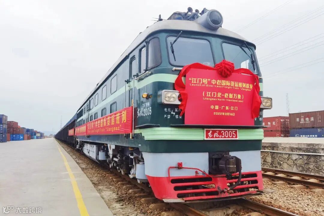 3月16日,江门首趟中老班列完成了所有货物的海关通关监管手续,从江门北站海关监管作业场所驶出。该趟班列全程2400公里,共有35个集装箱,装载空调、小家电、办公家具、不锈钢制品等货物。这些商品均为当地出口特色商品,在老挝市场上较受欢迎。