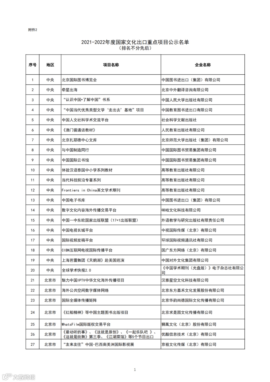 1. 2021-2022年度国家文化出口重点企业公示名单