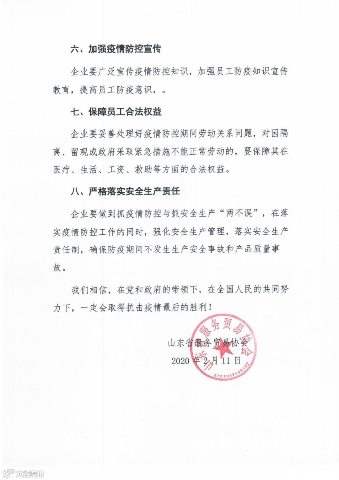 打好抗疫阻击战 做好有序复工倡议书