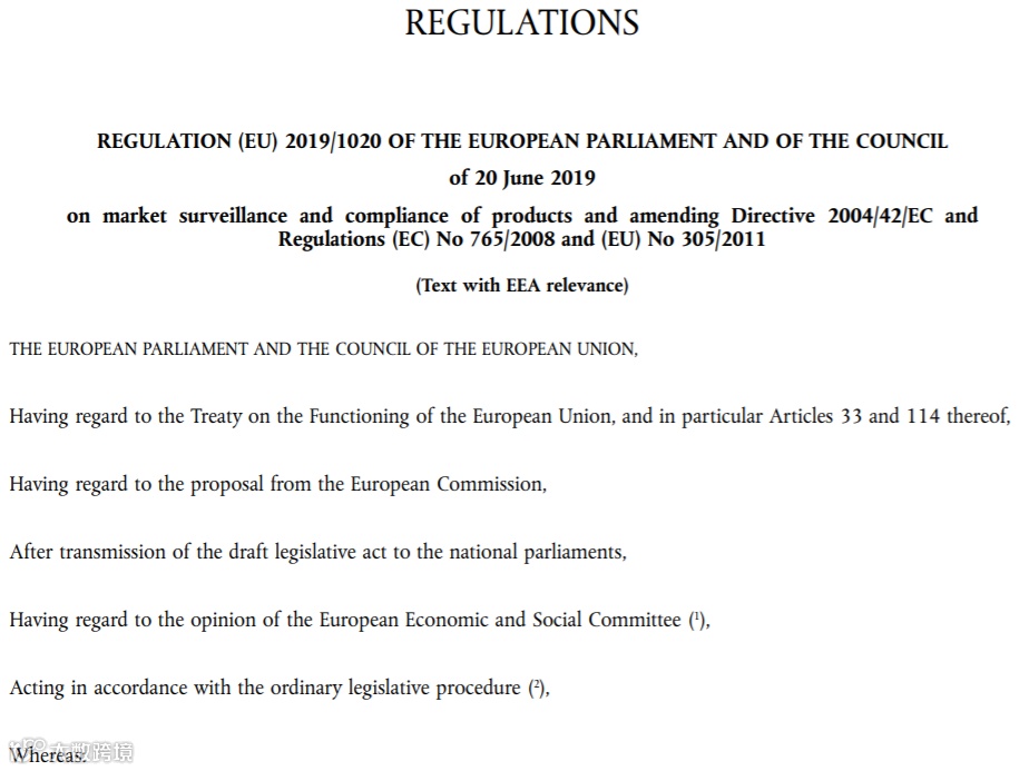 EU2019/1020法规原文链接: