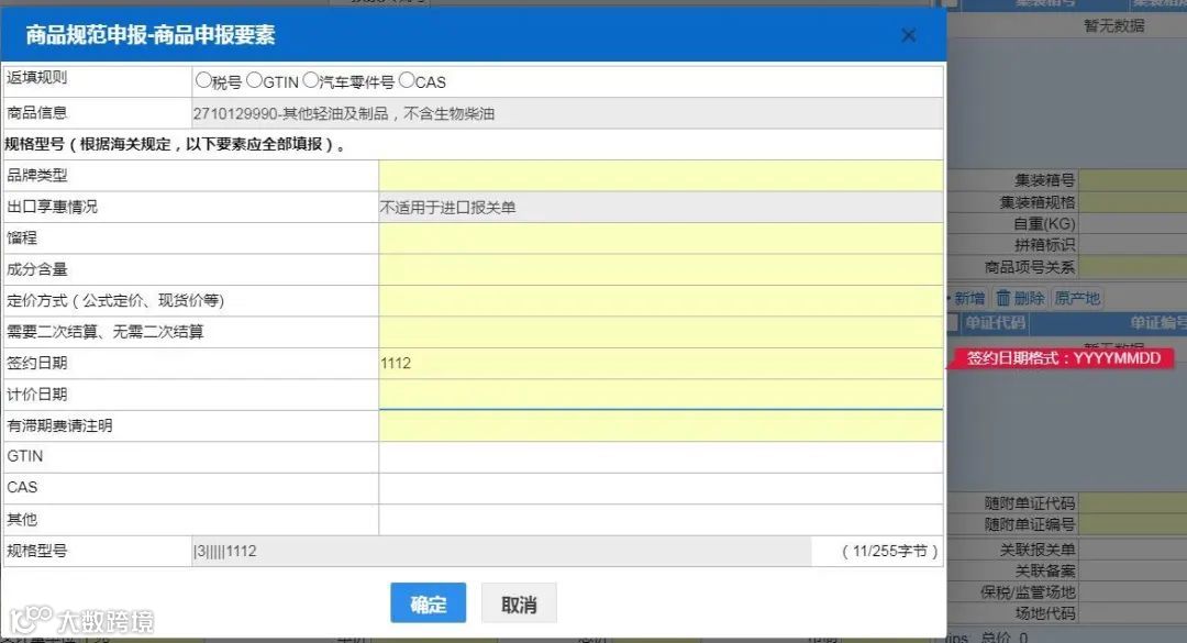 规格,主要表示货品大小尺寸,应申报完整,如块状、板状物申报“长宽厚”,卷状申报“宽幅、单层厚度、长度”,管状物申报“外径内径长度”等,原则上不能申报为无规格,不规则品应填报为“不规则形状”;