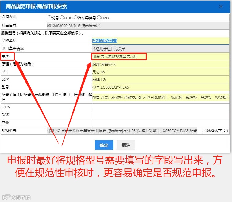 三、《目录》注解对申报要素作具体要求的,应按照注解要求填报。