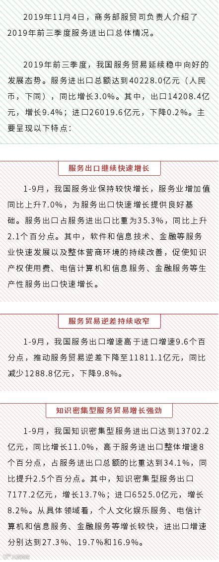 导读:权威解读 | 商务部服贸司负责人介绍2019年前三季度服务贸易发展情况