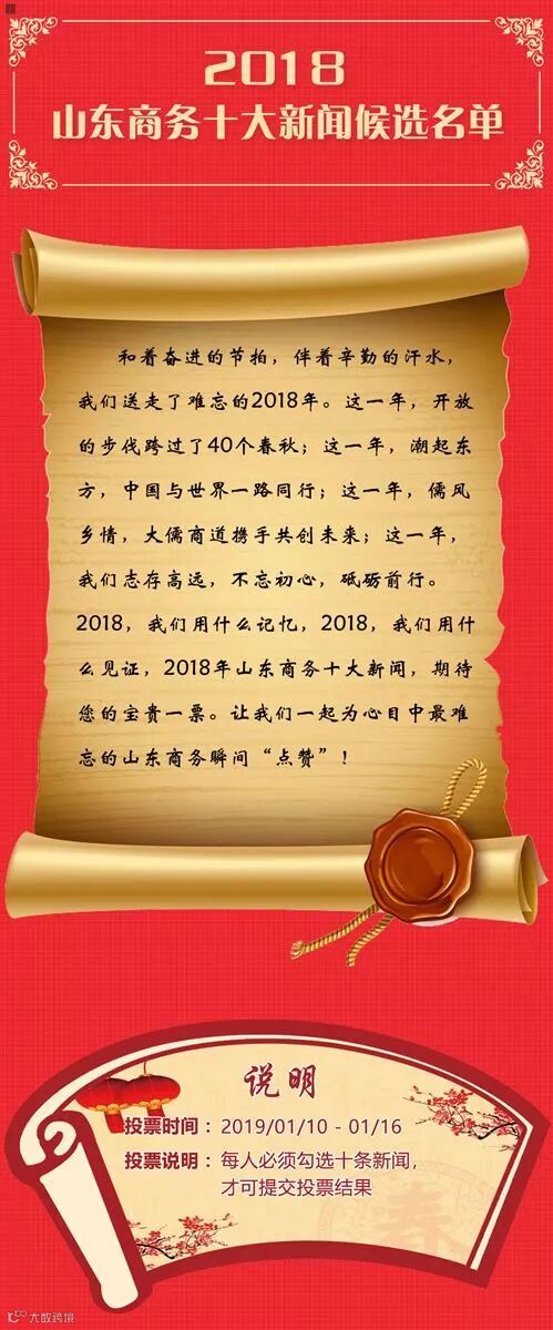 导读:2018山东商务十大新闻候选名单请点击阅读原文进行投票,真诚感谢您的支持和参与。