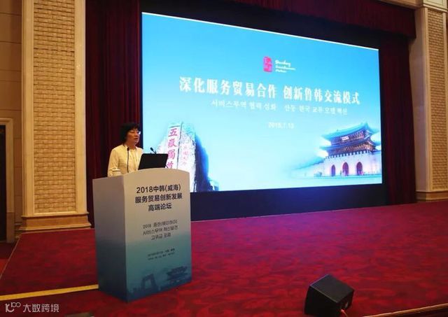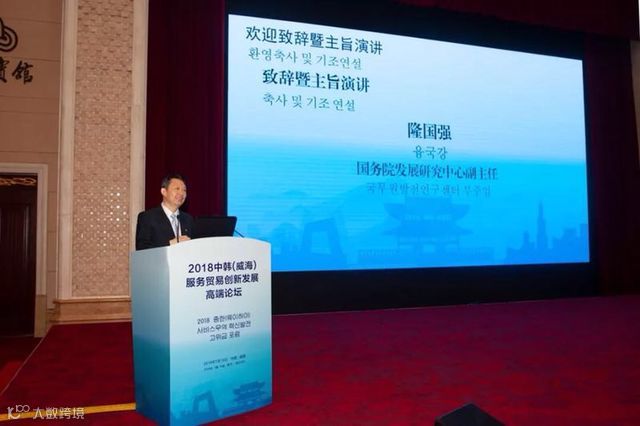 由国务院发展研究中心指导,中国国际商会、中国发展出版社和大韩贸易投资振兴公社联合主办,山东省商务厅、威海市人民政府支持的“2018中韩(威海)服务贸易创新发展高端论坛”于7月13日在威海市举行。本次论坛是为了进一步响应国家扩大服务业对外开放号召,探索自贸区国家间服务贸易创新合作框架,抢抓中韩自贸协定第二阶段谈判机遇,释放服务贸易创新发展试点及中韩自贸区地方经济合作示范区政策红利,促进中韩经贸合作交流,搭建两国服务贸易合作与对话机制。