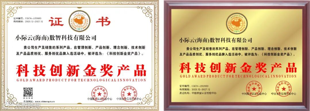 热烈庆祝小际云(海南)数智科技有限公司,在 “管理 / 产品 / 理念 / 技术创新 + 品质 / 服务创优” 品牌评选中,成功斩获《科技创新金奖产品》荣誉!