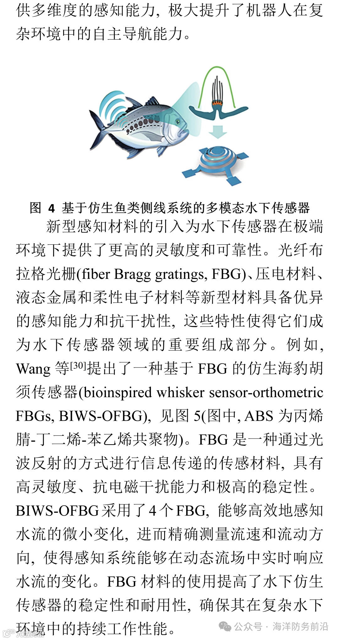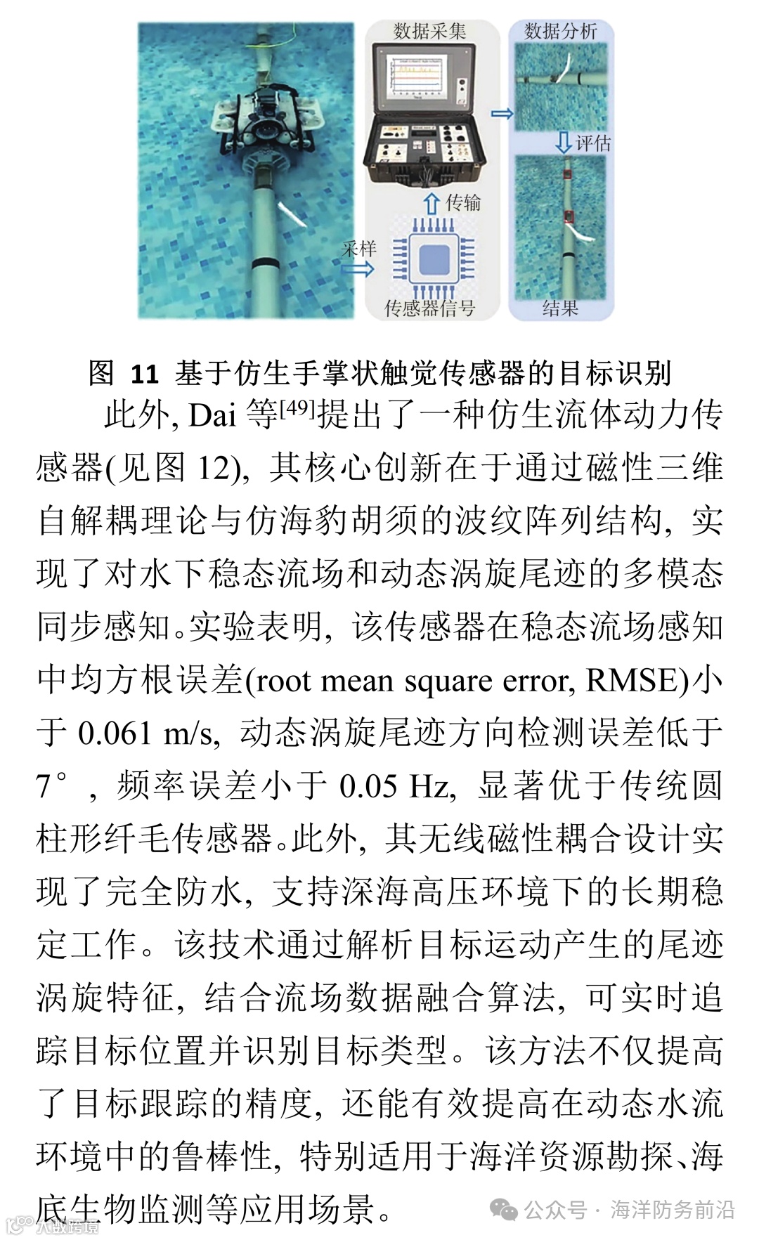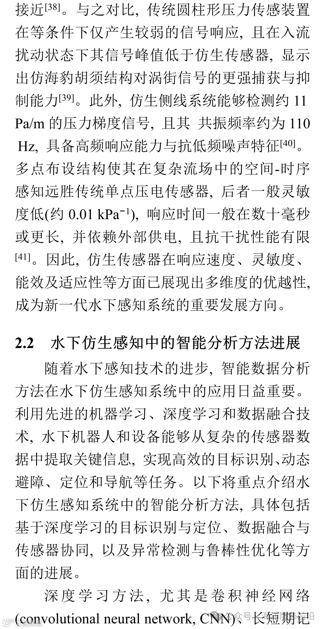 综上所述, 水下仿生感知技术的发展为水下智能设备提供了强大且新质的感知能力, 推动了水下机器人、可穿戴设备及海洋环境监测技术的发展。随着研究的深入和技术的不断创新, 水下仿生感知技术将在未来的海洋探索、环境监测、深海勘探等多个领域中发挥越来越重要的作用。