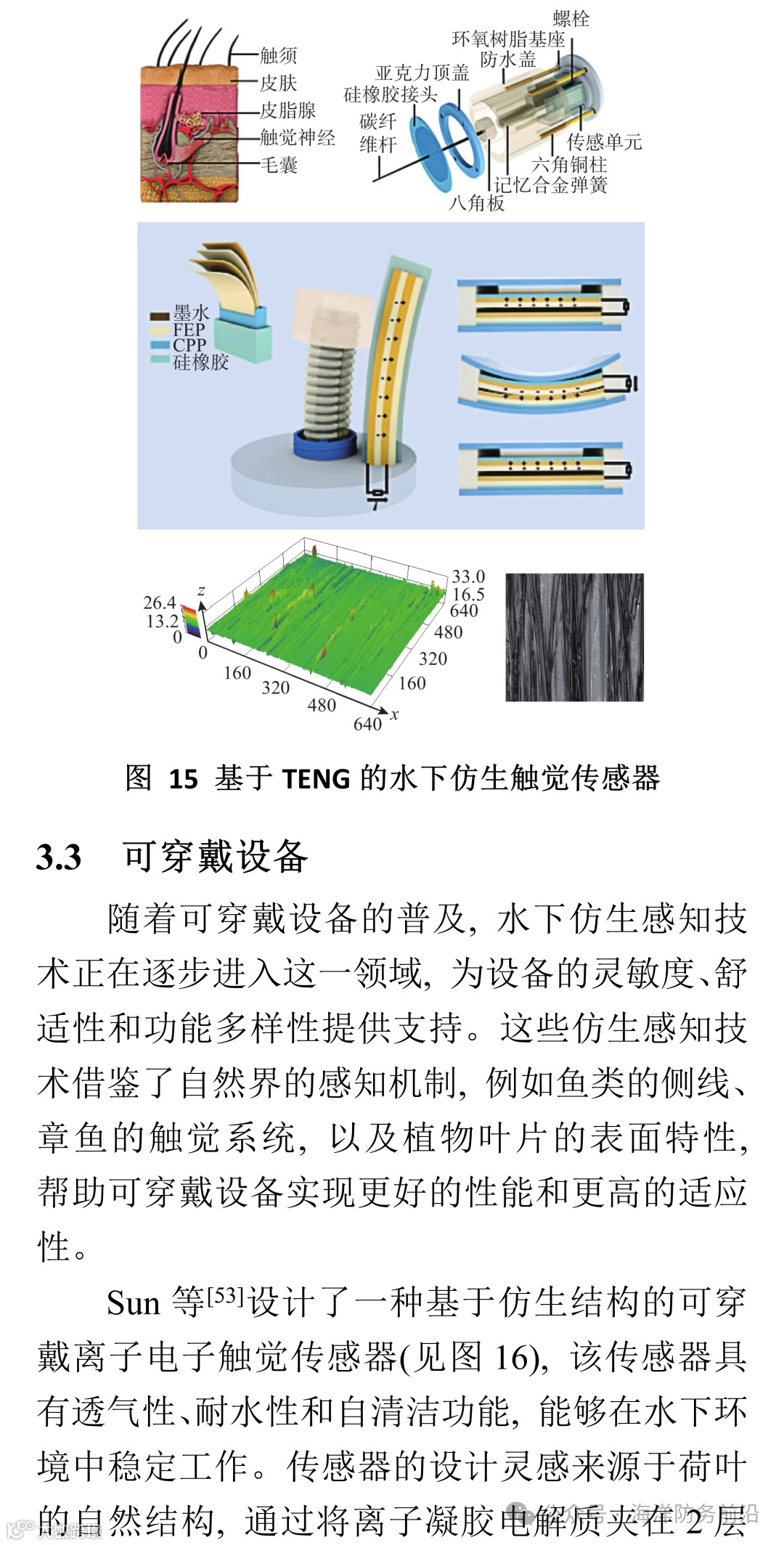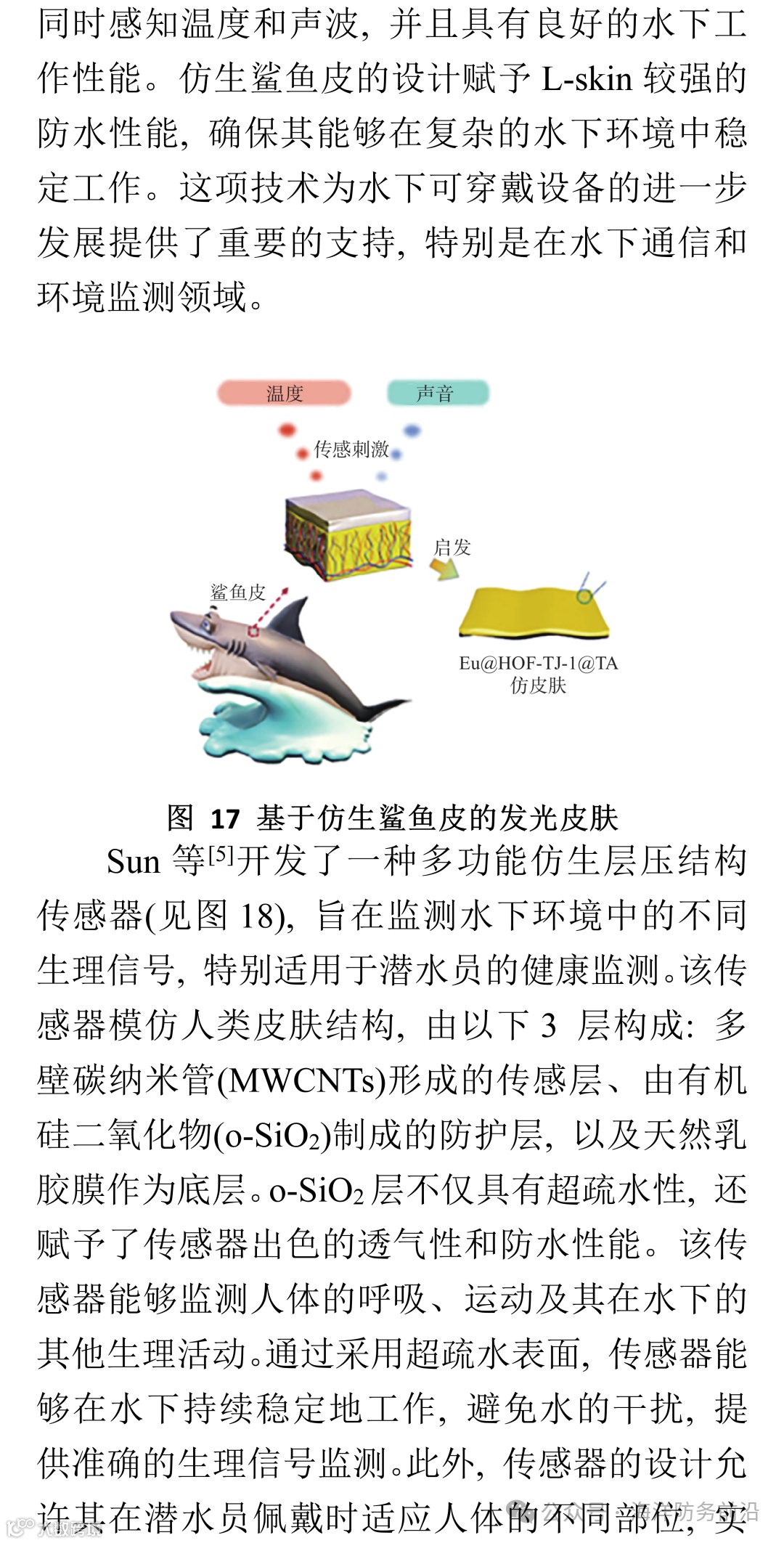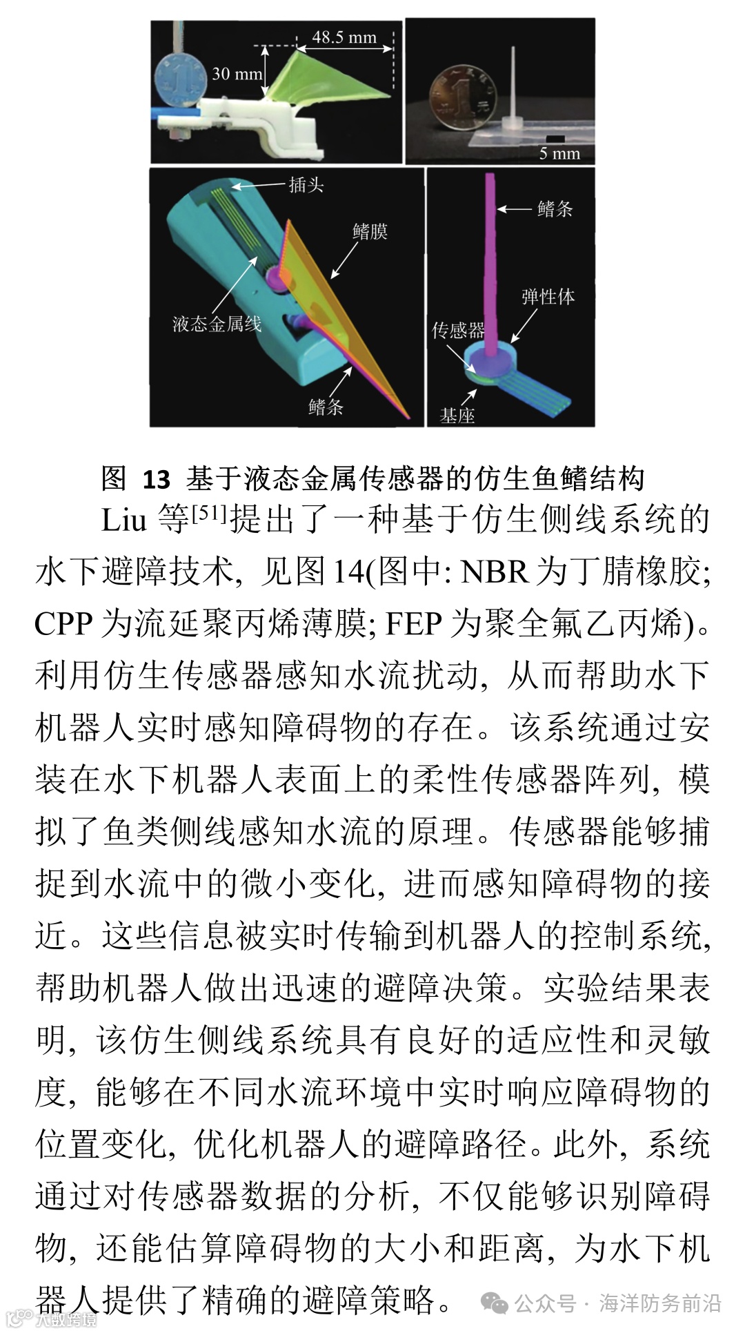 综上所述, 水下仿生感知技术的发展为水下智能设备提供了强大且新质的感知能力, 推动了水下机器人、可穿戴设备及海洋环境监测技术的发展。随着研究的深入和技术的不断创新, 水下仿生感知技术将在未来的海洋探索、环境监测、深海勘探等多个领域中发挥越来越重要的作用。