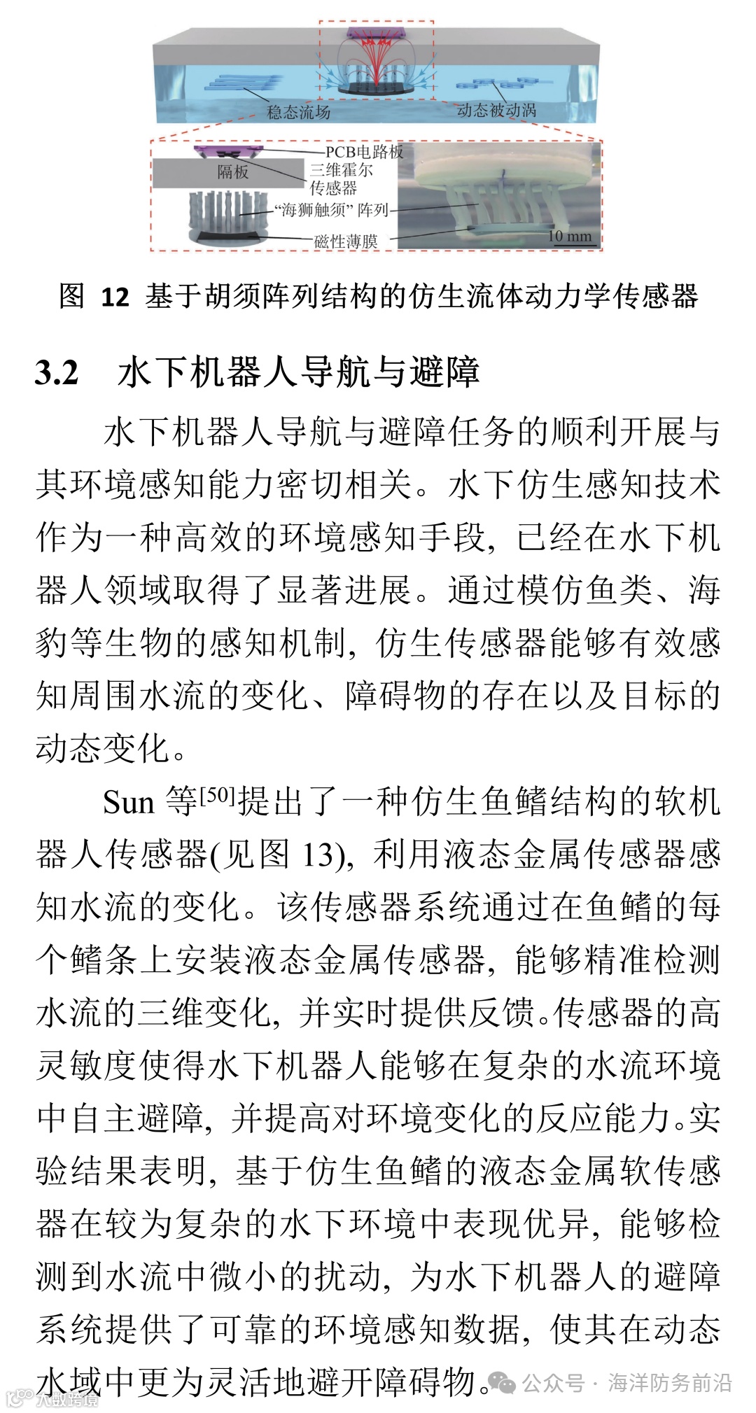 水下仿生感知技术通过模仿水生生物(如鱼类、海豹和章鱼等)独特的感知机制, 模拟其对流场扰动、压力和振动等环境因素的敏锐感知, 从而开发出高效、稳定的水下感知系统。通过仿生感知手段, 水下智能装备可以更加精准地感知复杂环境中的目标变化, 提升目标识别、定位和避障能力, 并为水下目标定位识别、水下机器人性能提升和可穿戴设备研发等提供强大的支持。