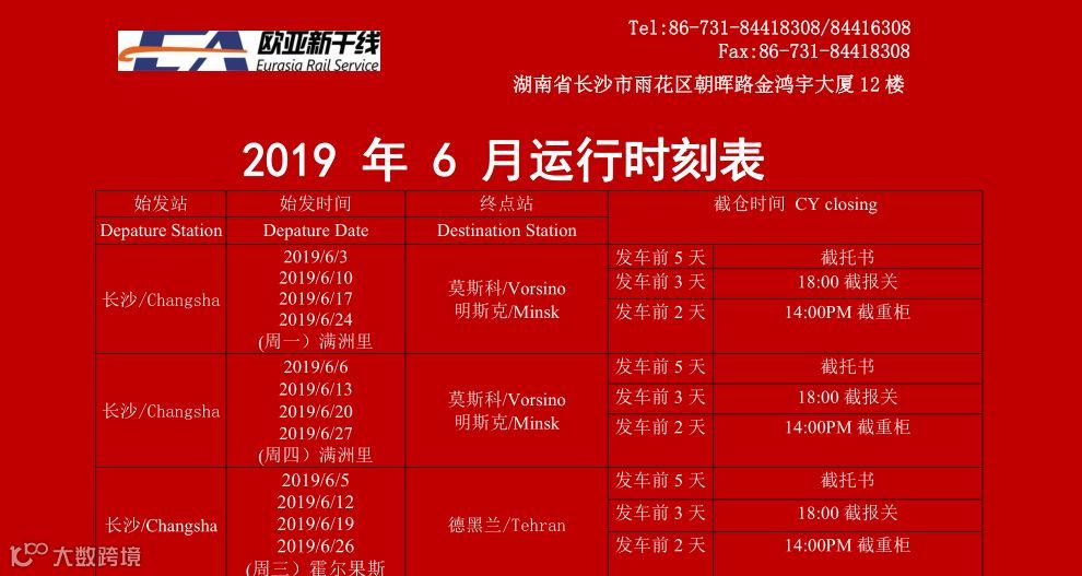 欧亚新干线班列运行时刻表