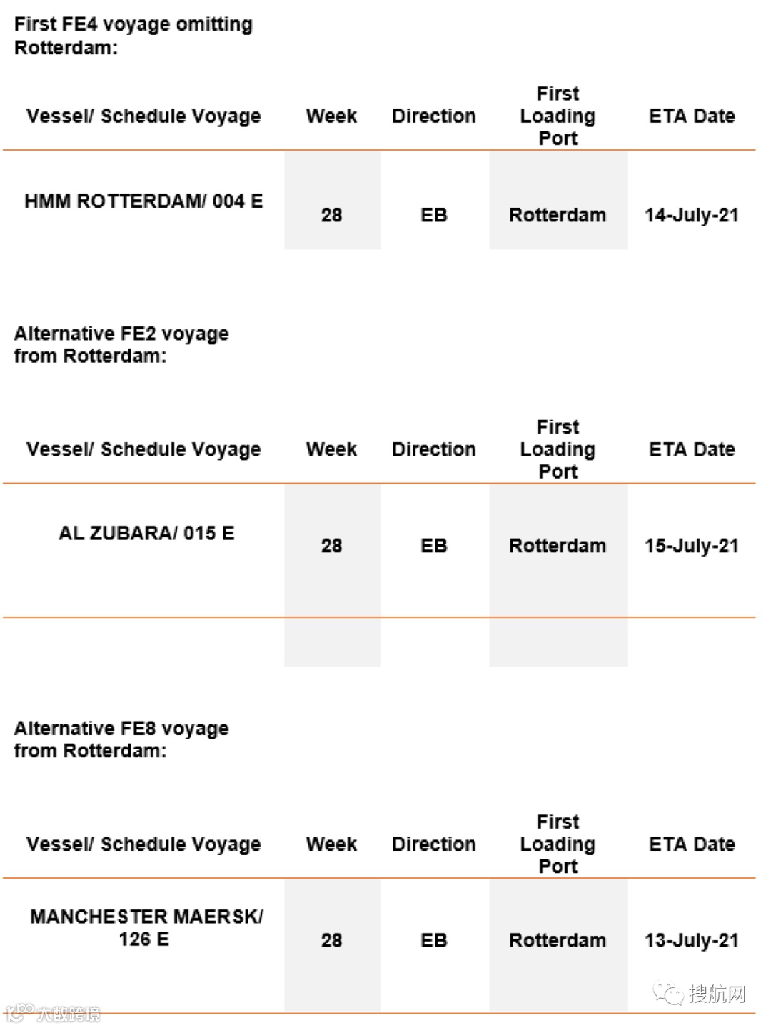 据悉,第一艘跳过鹿特丹港的集装箱船是“HMM Rotterdam”轮,这艘集装箱船预计将于7月14日抵达。