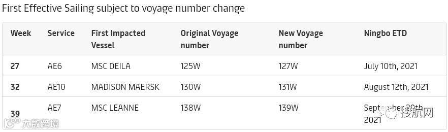 马士基和MSC通知客户,他们各自的AE6/Lion、AE7/Condor和 AE10/Silk服务的启航日期将追溯修改为船舶的实际航行日期。