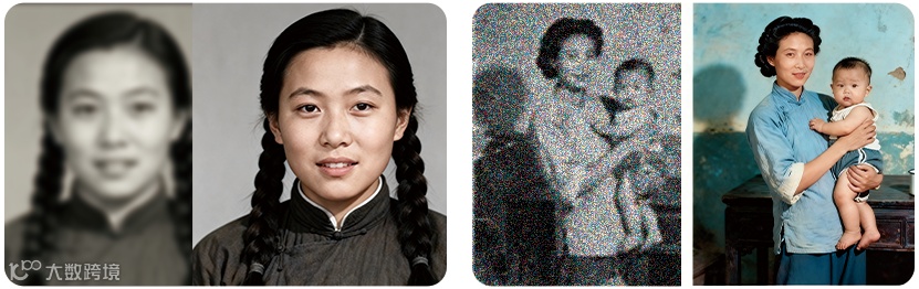 AI不仅能修复破损,还能为黑白照片智能添加符合时代的真实色彩,让记忆更加鲜活。