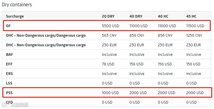 马士基还列出了从上海到西班牙阿尔赫西拉斯港所涉及的费率收取标准,即日起生效,直到另行通知。这些费用将来可能会更改,届时将及时通知客户。