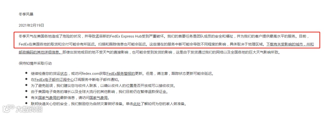*** 在这段时间,货主们发货美国一定要拉长备货时间,购买货物保险,和货代及买家保持联系,多询问物流运输状态,告知买家天气延误情况 ***