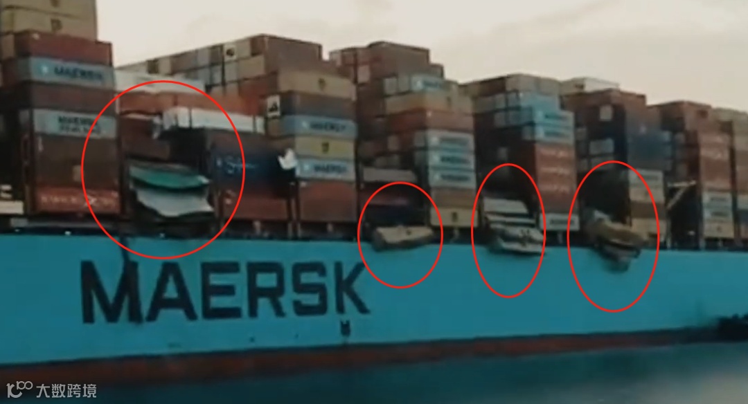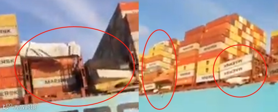 无独有偶,就在上个月,1月16日,马士基“Maersk Essen”轮因遭遇恶劣天气,在从中国厦门港驶往美国洛杉矶港的途中,发生集装箱掉落和损坏事故(见上图)。近年来海运事故多发,建议货主发货时购买货运险。