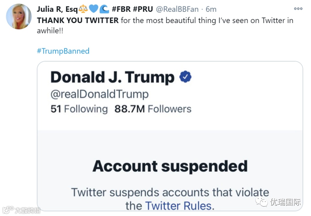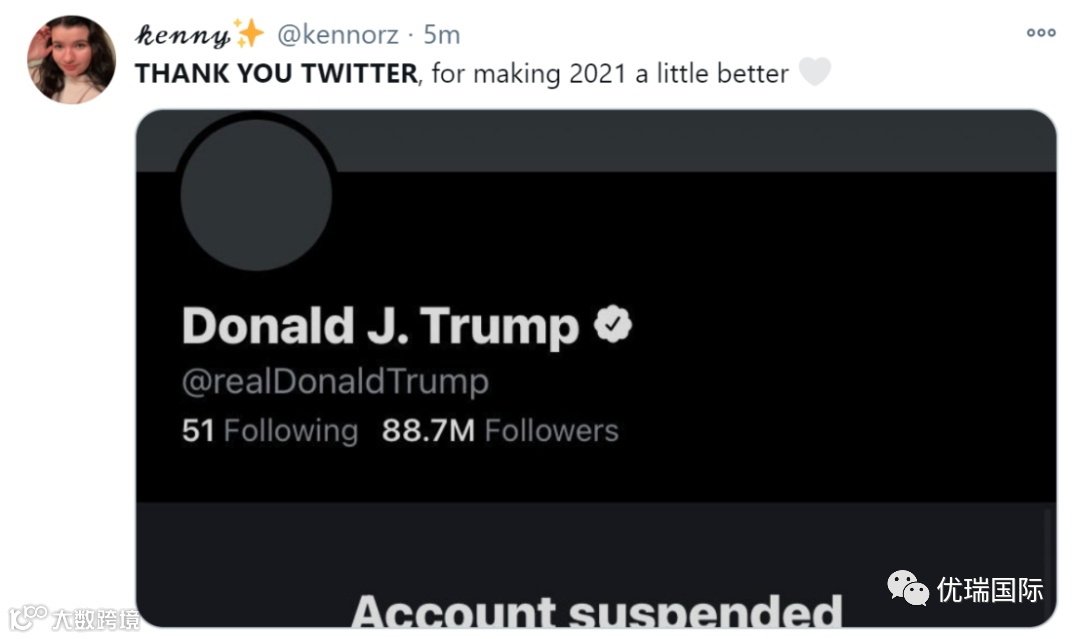 随后,推特平台宣布封禁特朗普推特账号12小时。
