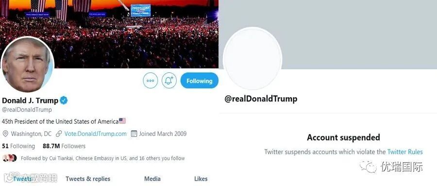 特朗普推特账号前后对比图