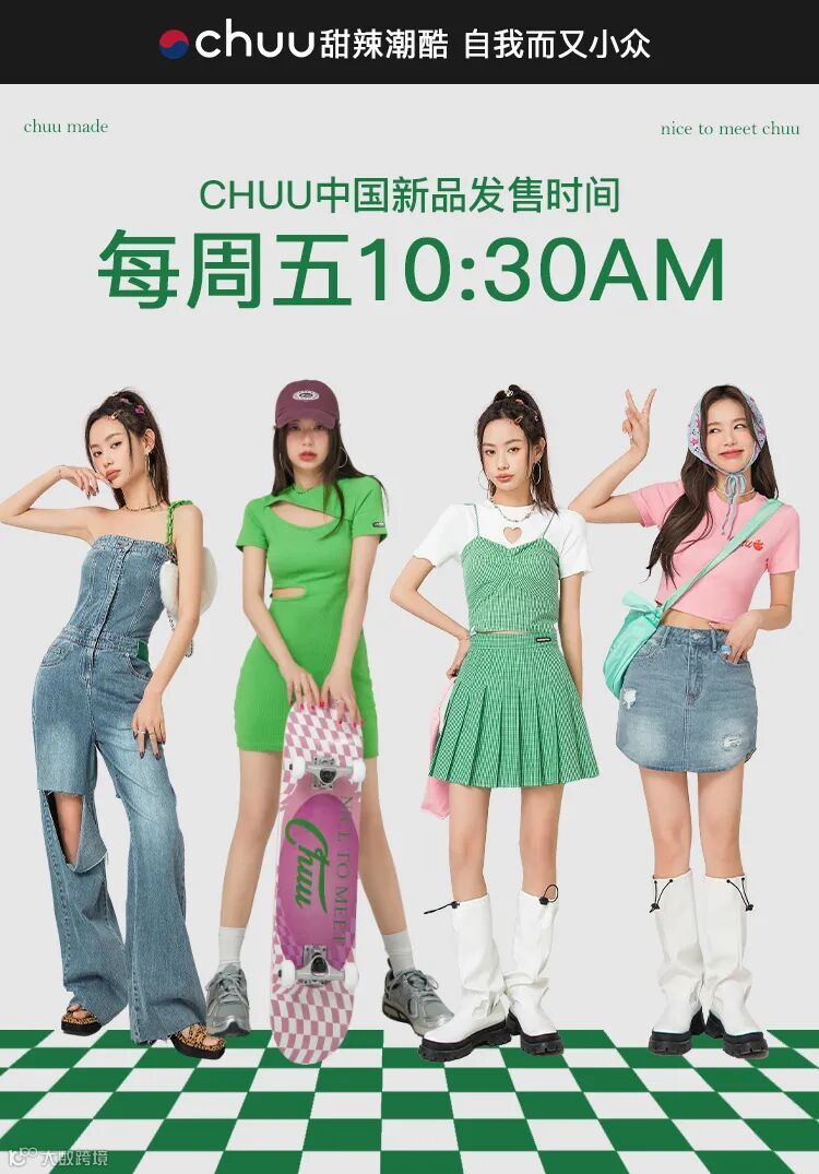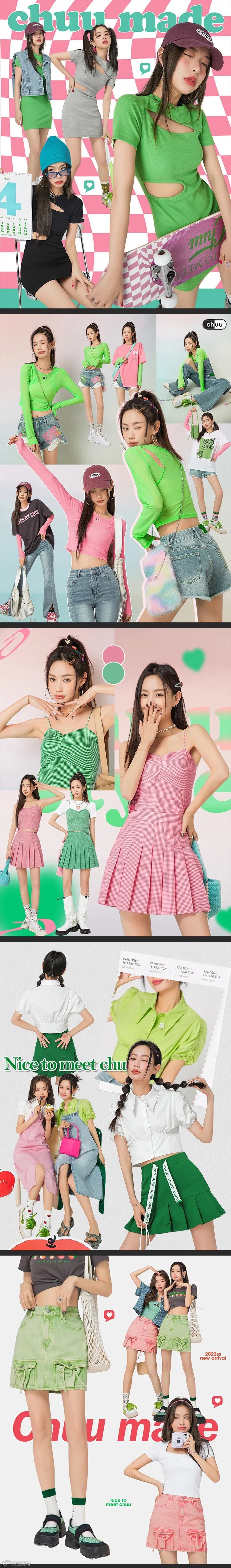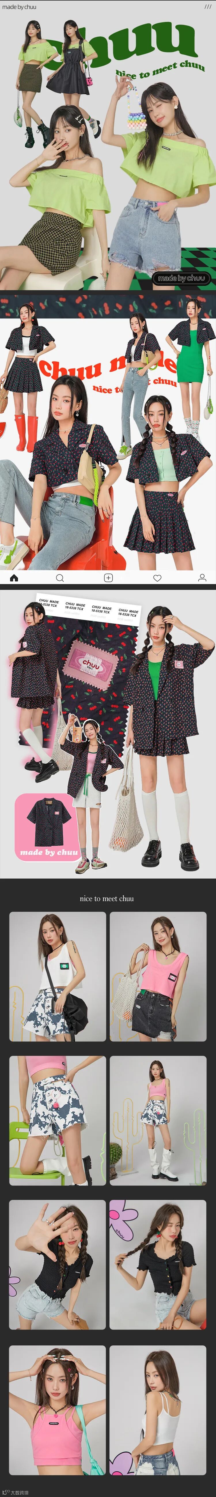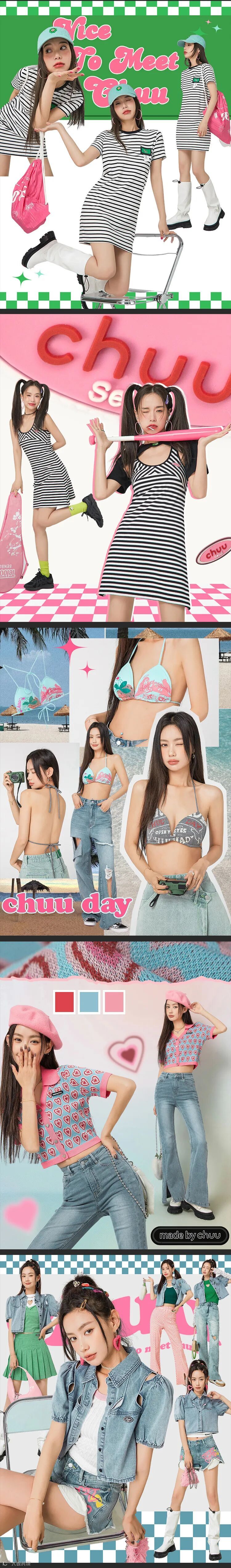 chuu,韩国本土网红潮流时尚品牌。2012年创立于韩国首尔。甜辣,轻运动,高调张扬的自我穿搭方式。