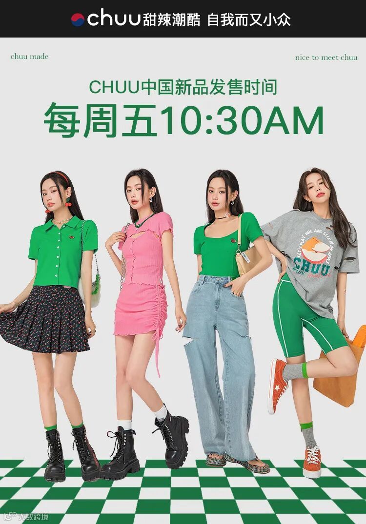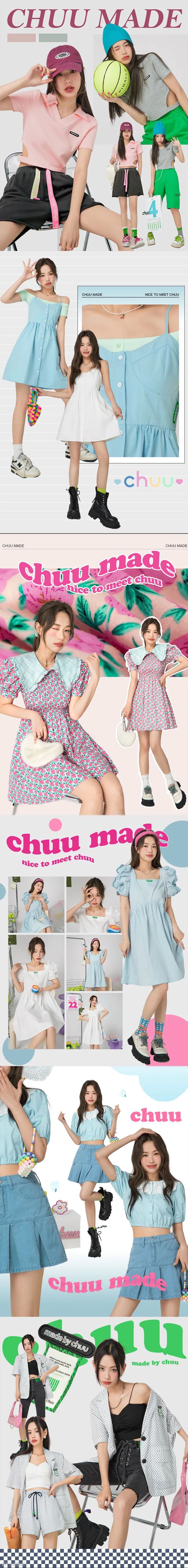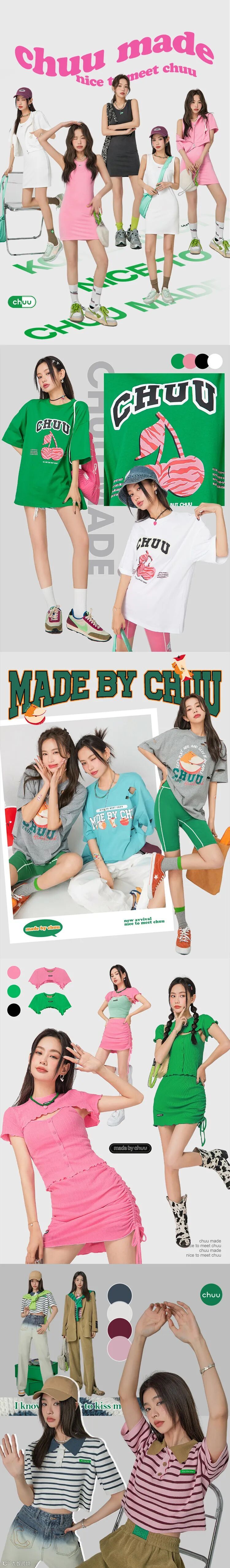 chuu,韩国本土网红潮流时尚品牌。2012年创立于韩国首尔。甜辣,轻运动,高调张扬的自我穿搭方式。