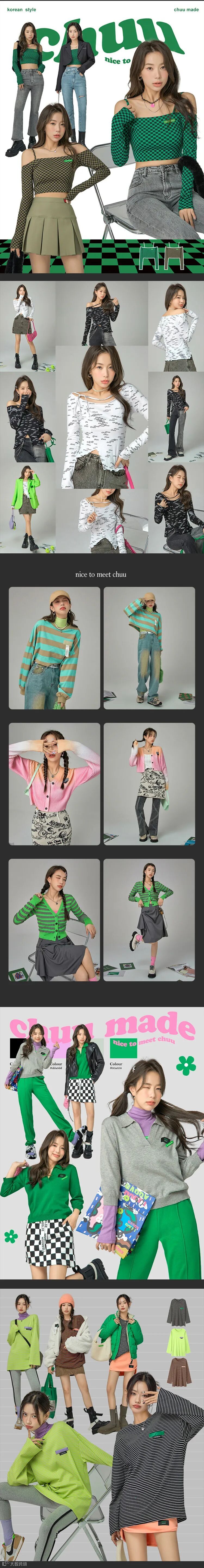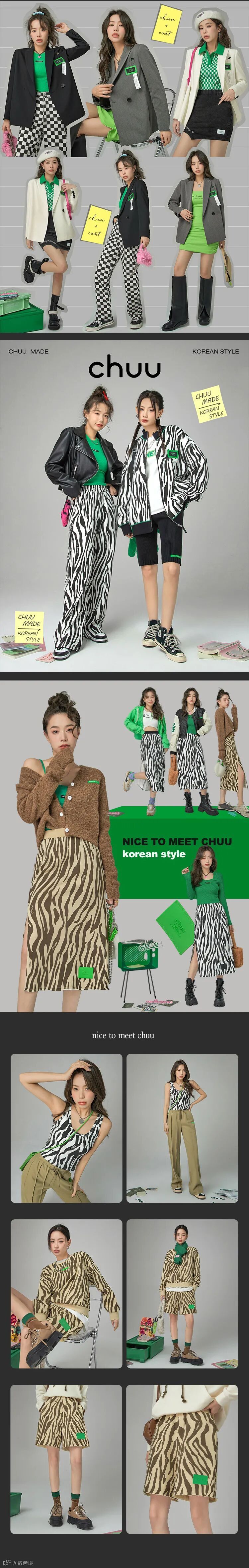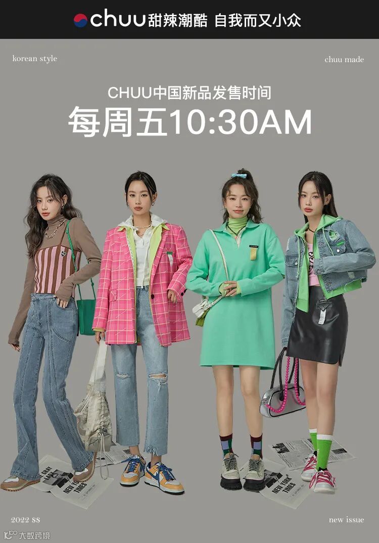 chuu,韩国本土网红潮流时尚品牌。2012年创立于韩国首尔。甜辣,轻运动,高调张扬的自我穿搭方式。