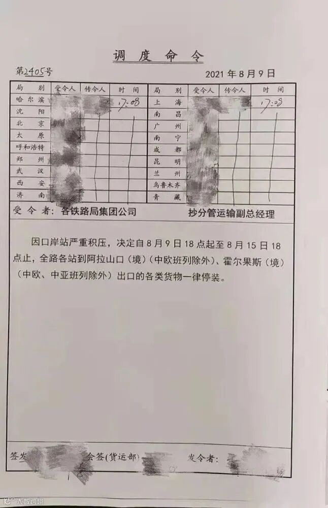 接下来再说一下大家关心的时效。实际上,口岸的拥堵已经持续了一段时间。8月刚刚过半,已有两条针对新疆口岸的调度令。