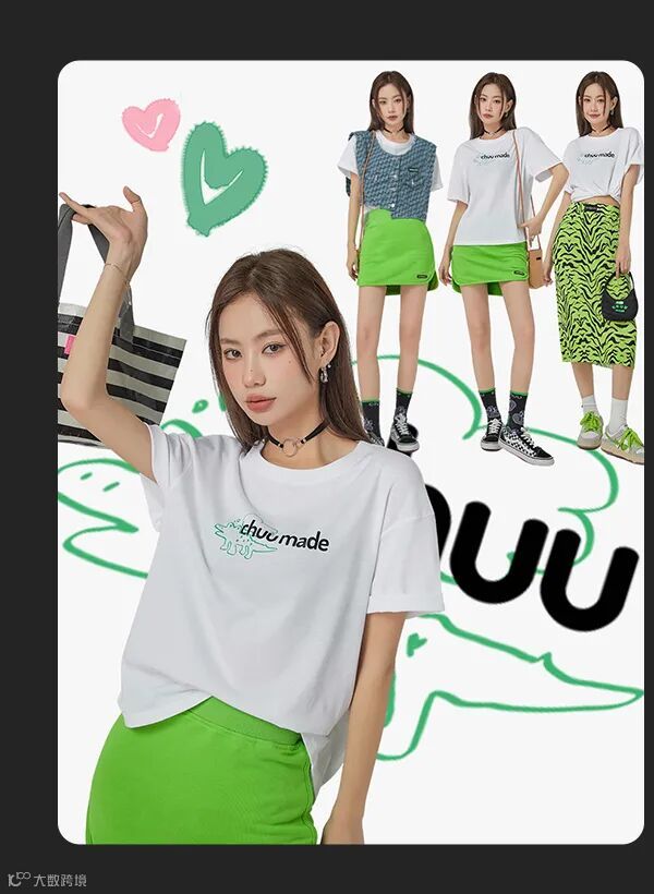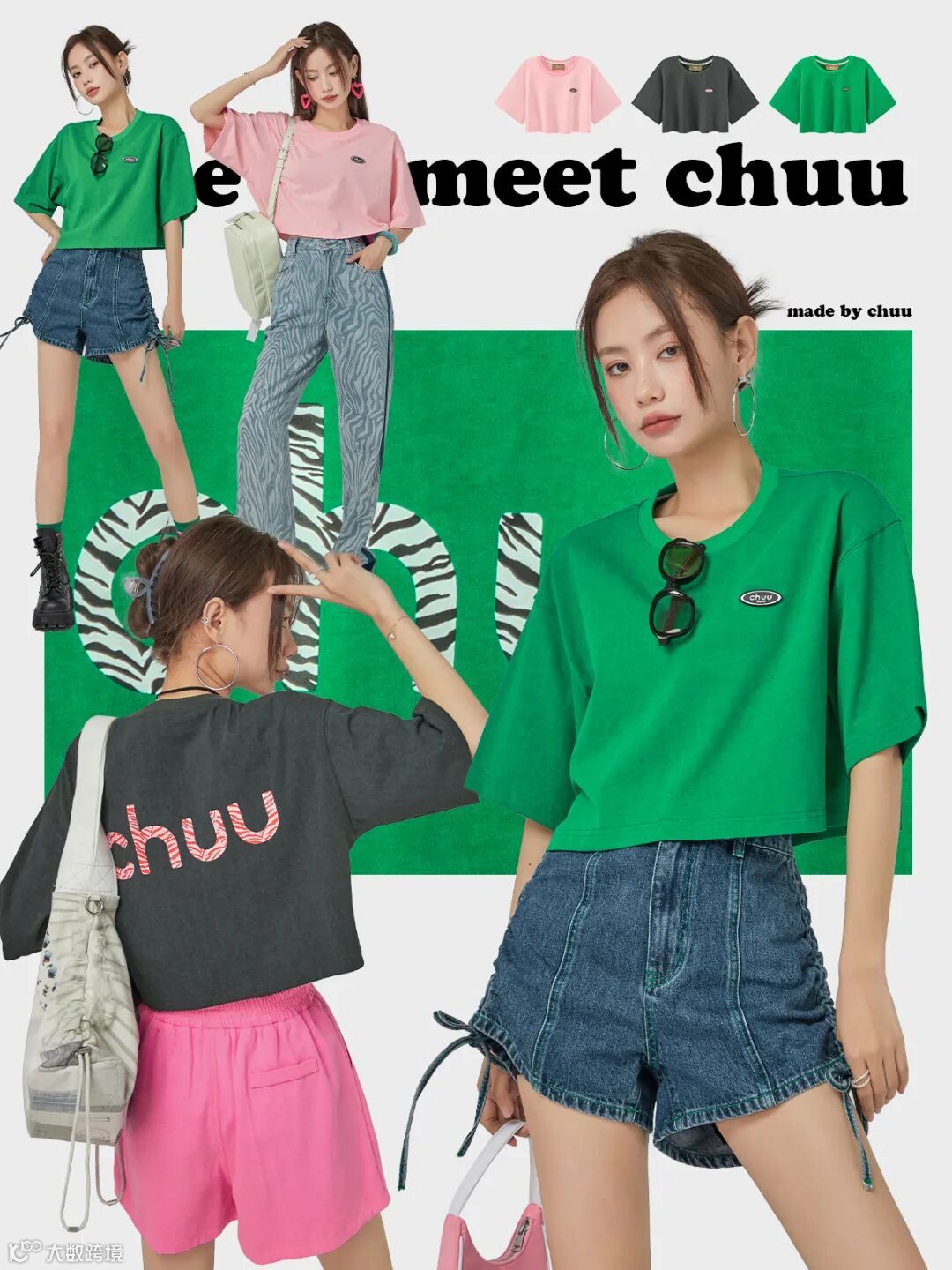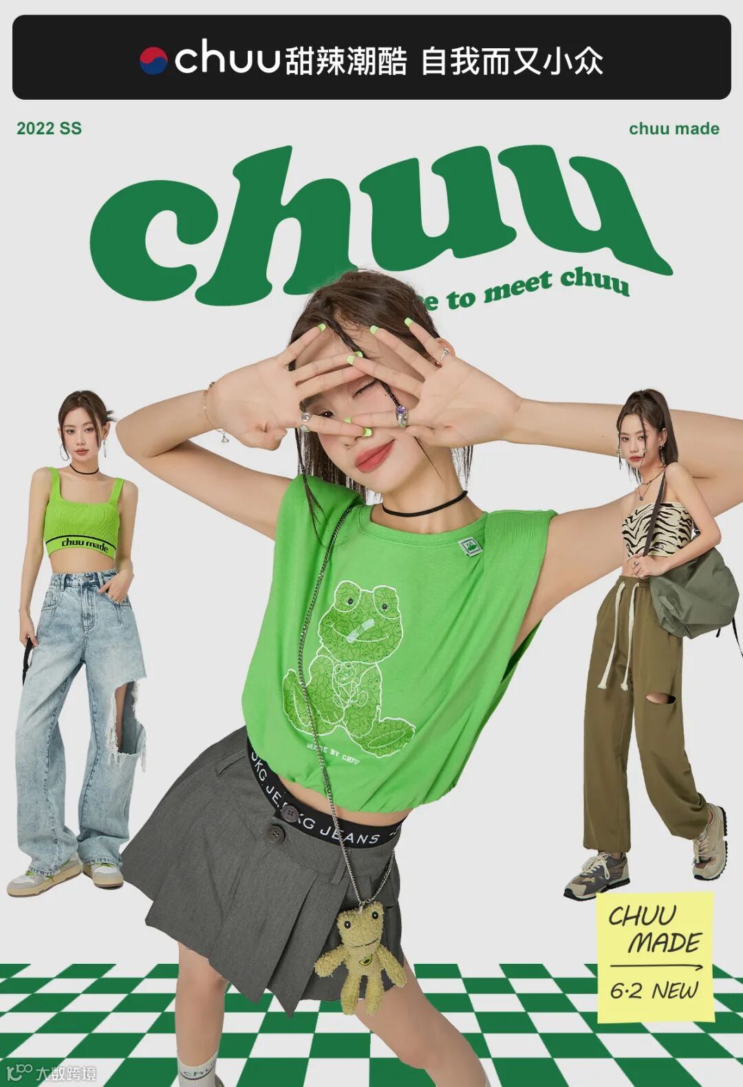 chuu,韩国本土网红潮流时尚品牌。2012年创立于韩国首尔。甜辣,轻运动,高调张扬的自我穿搭方式。