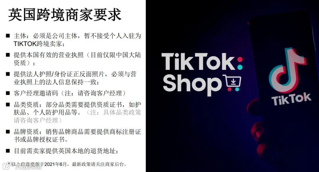 7月初据TikTok业务培训师表示,TikTok英国站的招商政策已经发布,只要拥有中国营业执照的企业卖家就可以入驻TikTok Shop,商品可以从国内直发,这对中国卖家来说真是一个好消息!因为之前TikTok英国站的电商小店功能只对拥有英国公司执照的卖家开放,这次相当于政策宽松了,扩大了入驻的范围,降低了门槛。