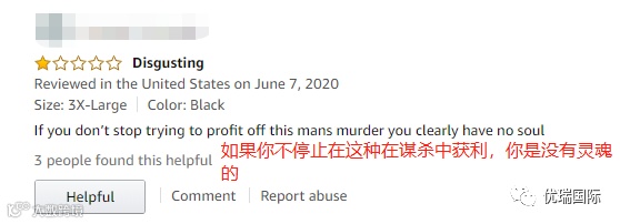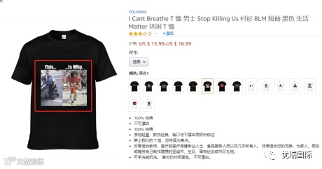 虽然亚马逊的禁止销售指南规定禁止使用犯罪现场的照片产品,但是仍然有卖家在该平台上上架。目前 部分带有该现场印花的服饰已经下架,不过亚马逊平台上依旧还存在着印有相同图案的T恤。