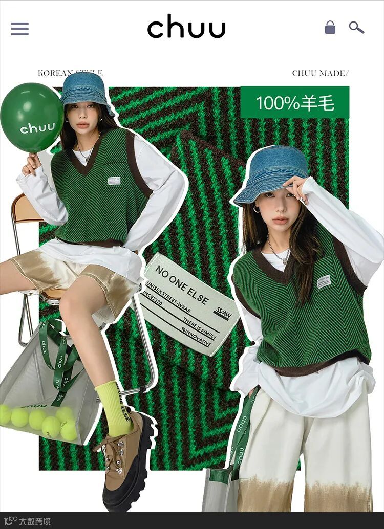 chuu,韩国本土网红潮流时尚品牌。2012年创立于韩国首尔。甜辣,轻运动,高调张扬的自我穿搭方式。