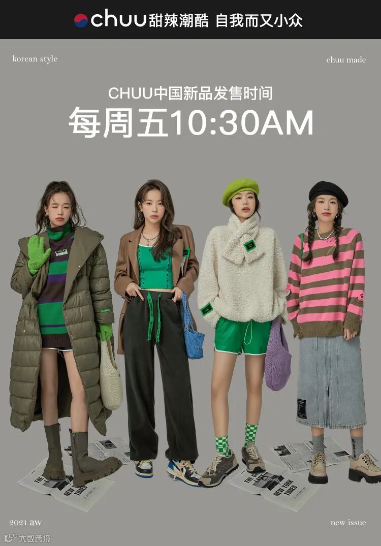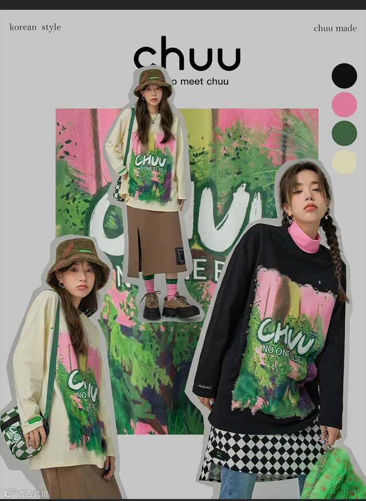 chuu,韩国本土网红潮流时尚品牌。2012年创立于韩国首尔。甜辣,轻运动,高调张扬的自我穿搭方式。