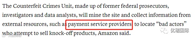 因为很多卖家在店铺注册上都有自己的技巧,一般很难从注册信息中找到正确的店铺负责人。所以亚马逊在这个新团队中加了点猛料——第三方服务商。