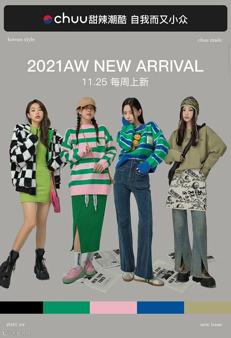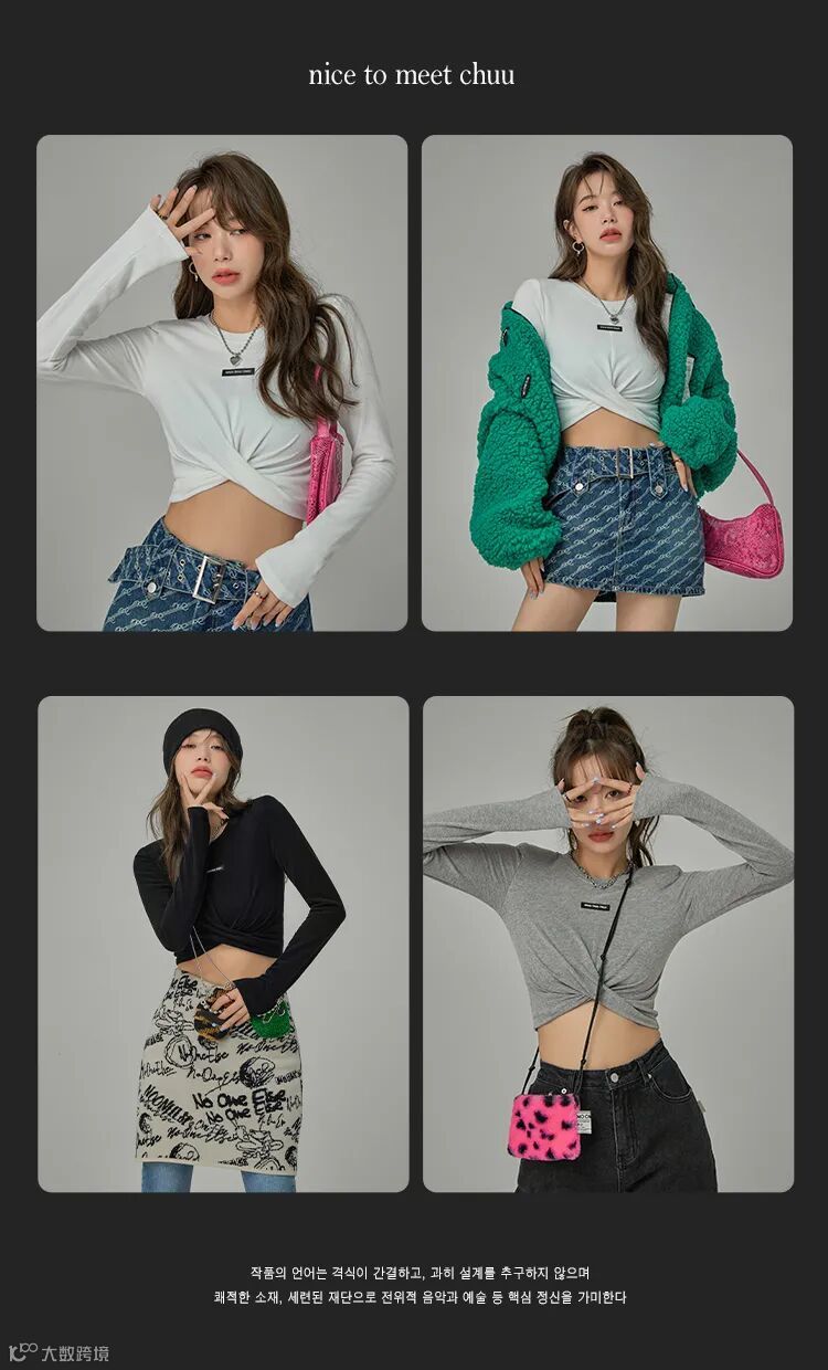chuu,韩国本土网红潮流时尚品牌。2012年创立于韩国首尔。甜辣,轻运动,高调张扬的自我穿搭方式。