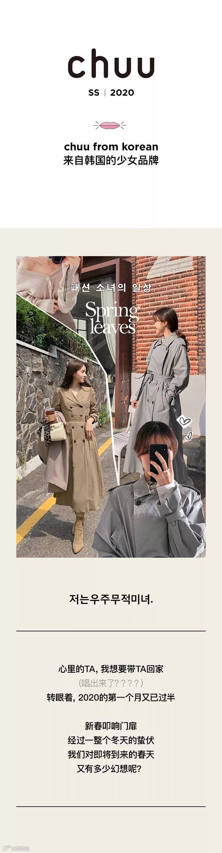 chuu,韩国本土网红潮流时尚品牌。2012年创立于韩国首尔。甜辣,轻运动,高调张扬的自我穿搭方式。
