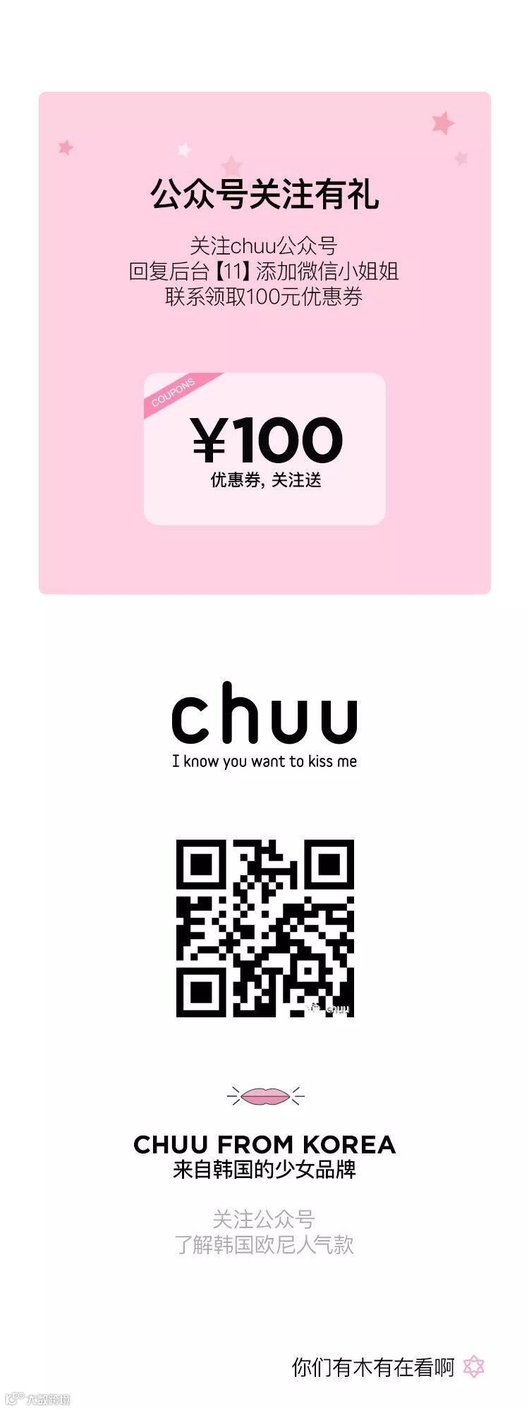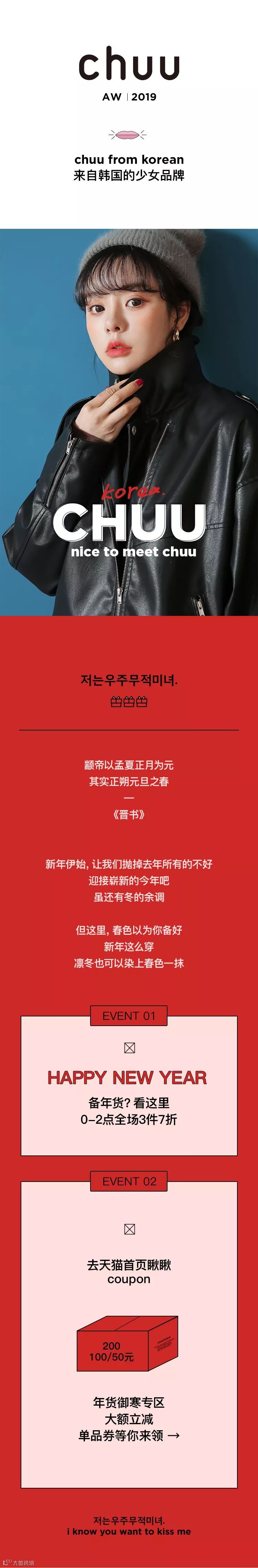 chuu,韩国本土网红潮流时尚品牌。2012年创立于韩国首尔。甜辣,轻运动,高调张扬的自我穿搭方式。