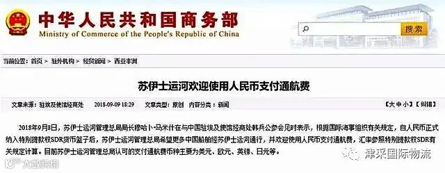 苏伊士运河欢迎用人民币结算Suez Canal welcomes RMB settlement