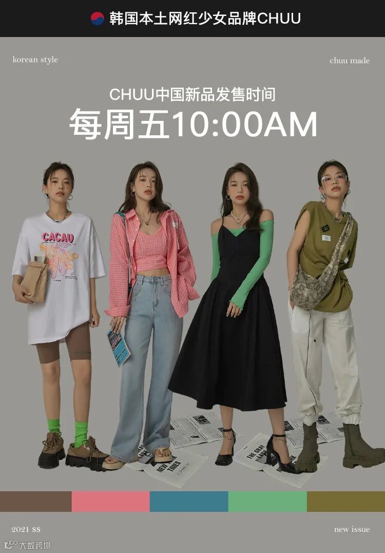 chuu,韩国本土网红潮流时尚品牌。2012年创立于韩国首尔。甜辣,轻运动,高调张扬的自我穿搭方式。