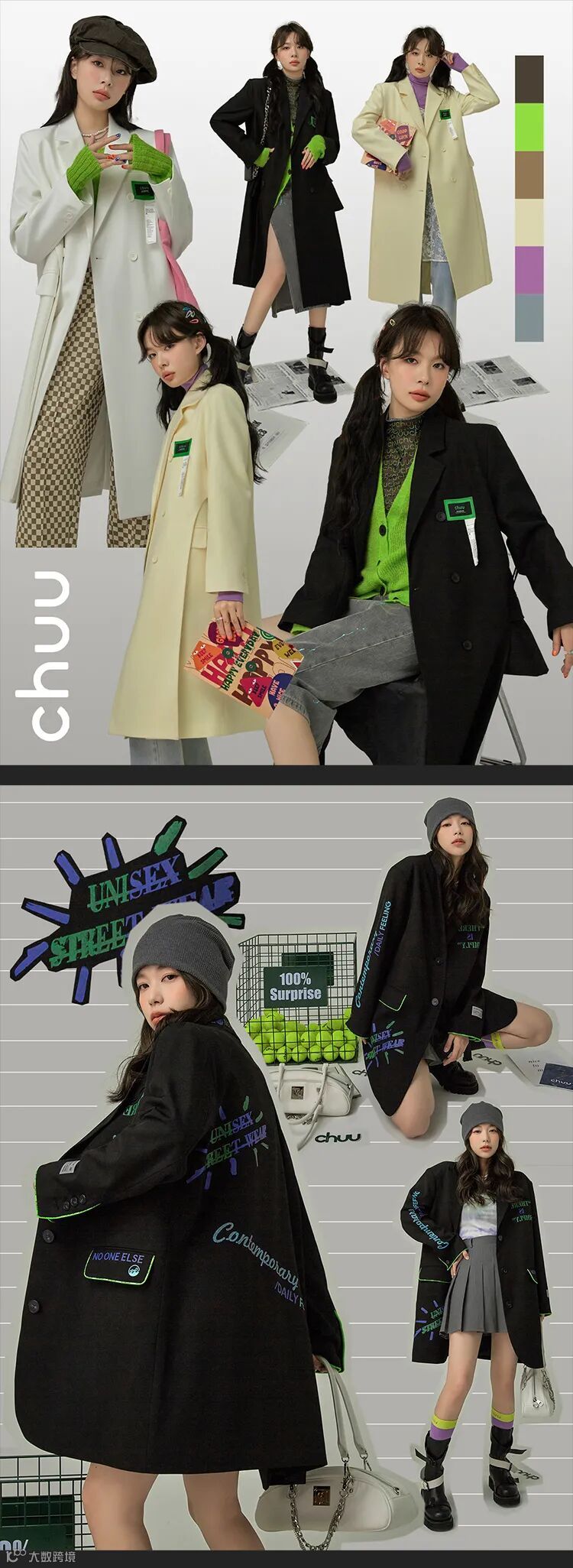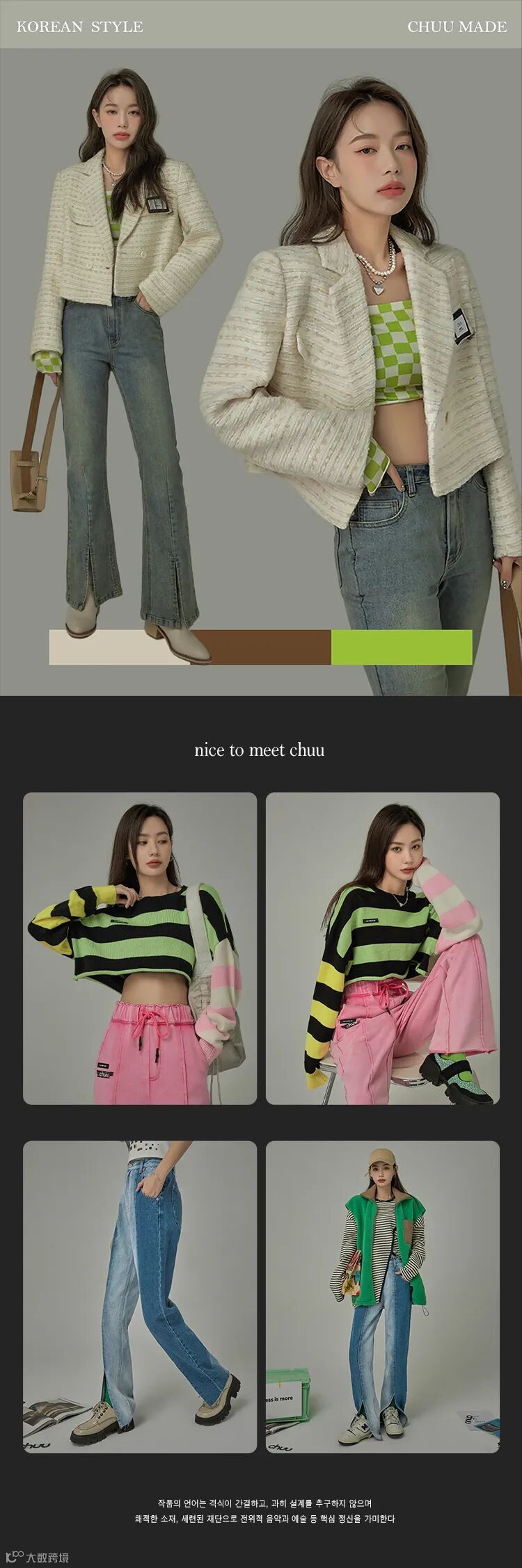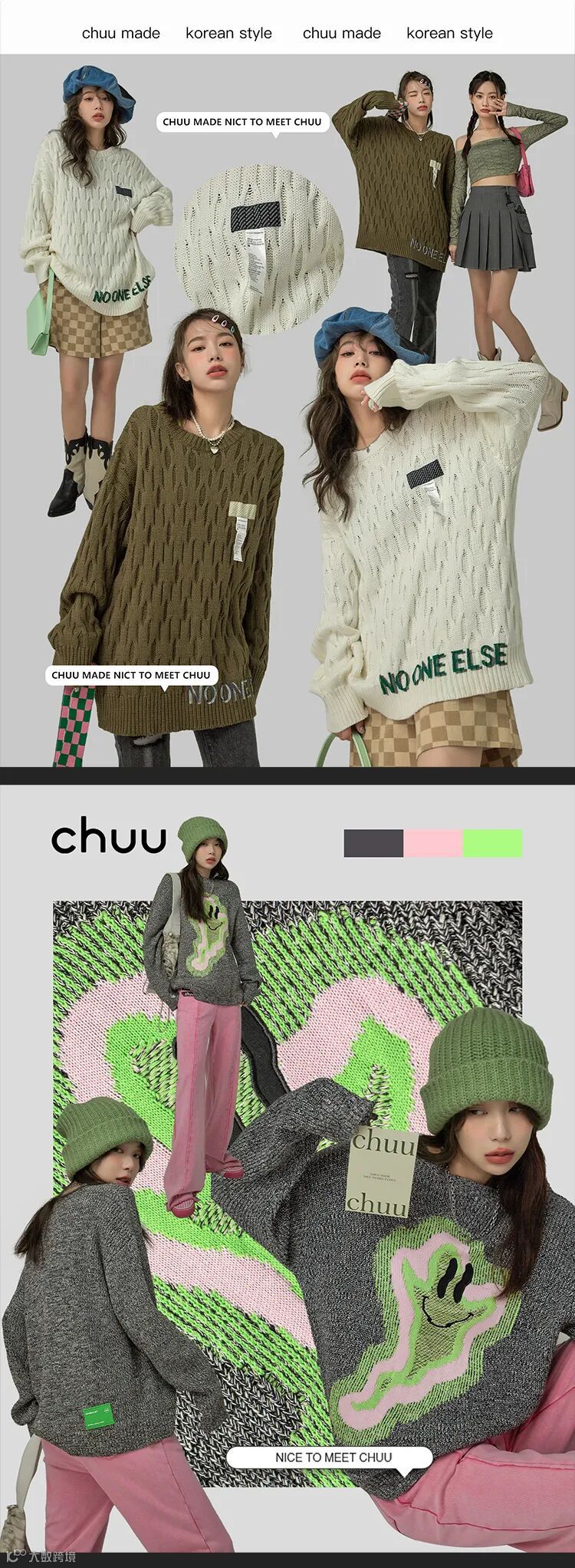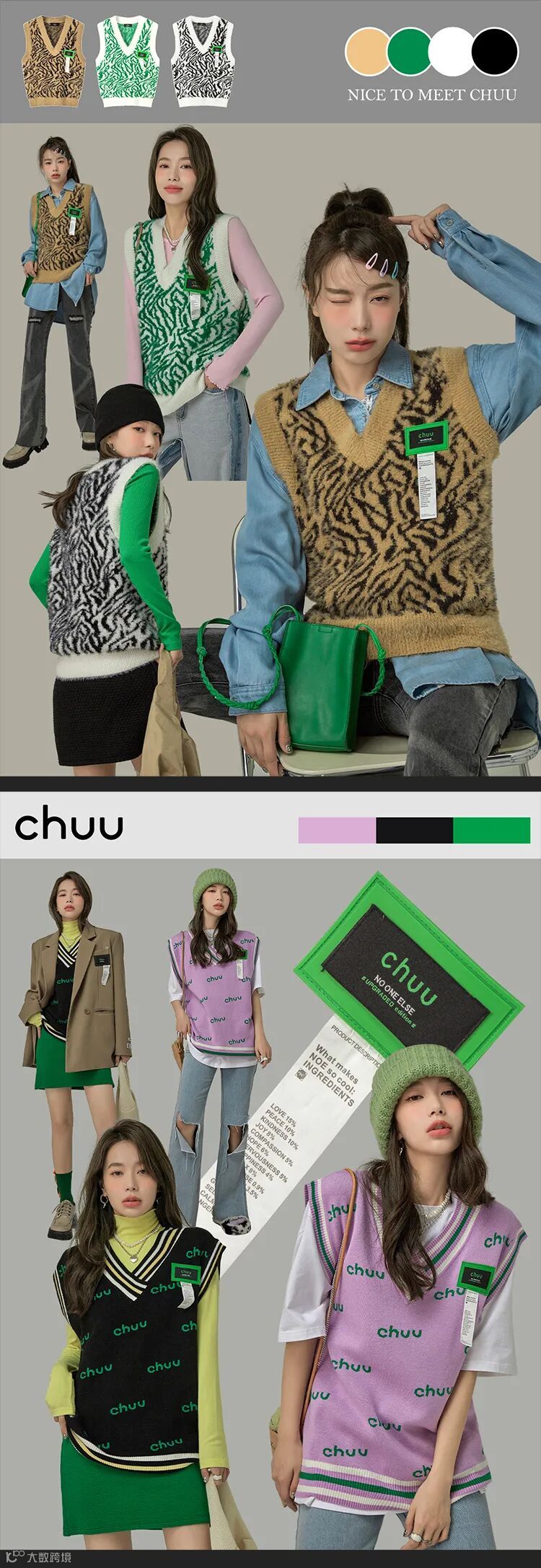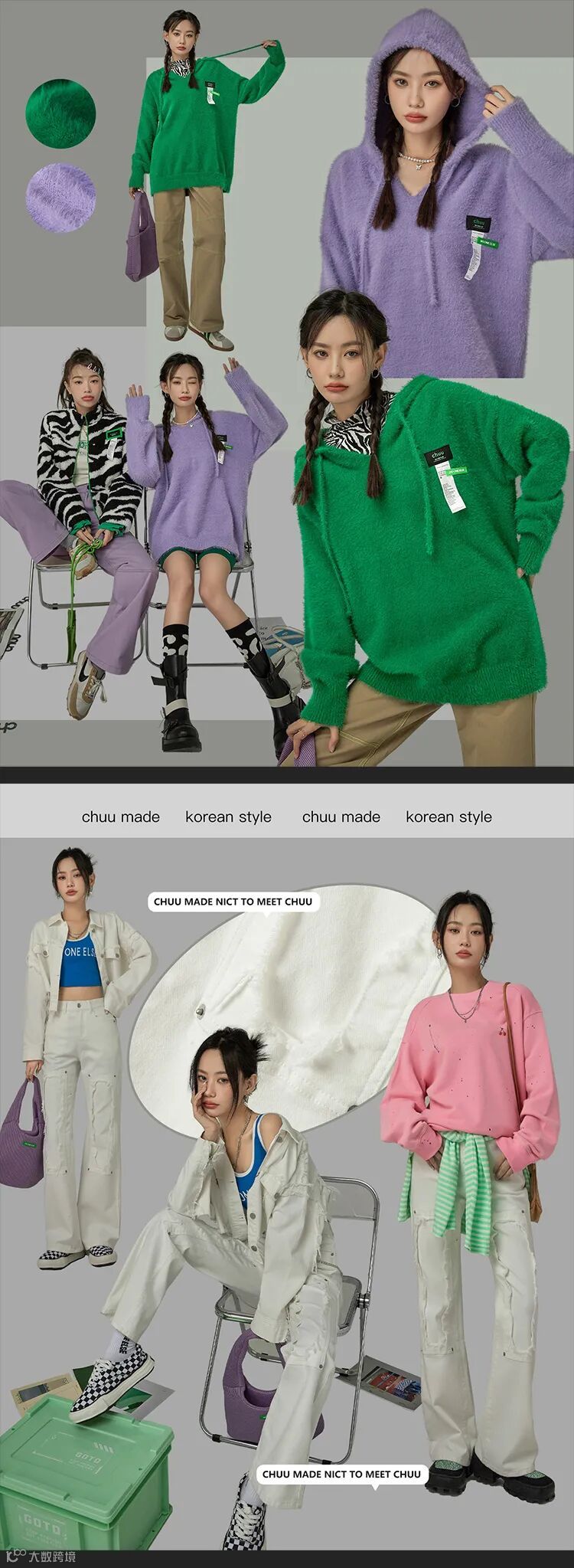 chuu,韩国本土网红潮流时尚品牌。2012年创立于韩国首尔。甜辣,轻运动,高调张扬的自我穿搭方式。