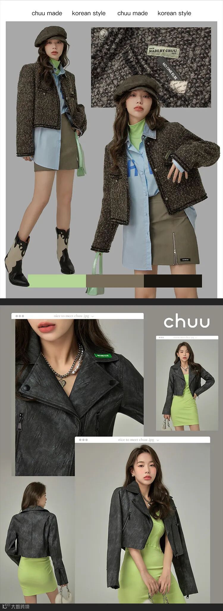 chuu,韩国本土网红潮流时尚品牌。2012年创立于韩国首尔。甜辣,轻运动,高调张扬的自我穿搭方式。