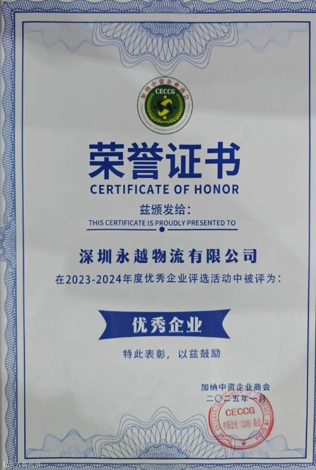 此次荣获“优秀企业”称号,既是鼓励,更是鞭策。未来,永越物流将继续秉持初心,砥砺前行,不断提升自身实力,为促进中加友好合作、推动共建“一带一路”高质量发展做出新的更大贡献!不断提升服务质量,拓展业务领域,为全球客户提供更加优质的物流解决方案!